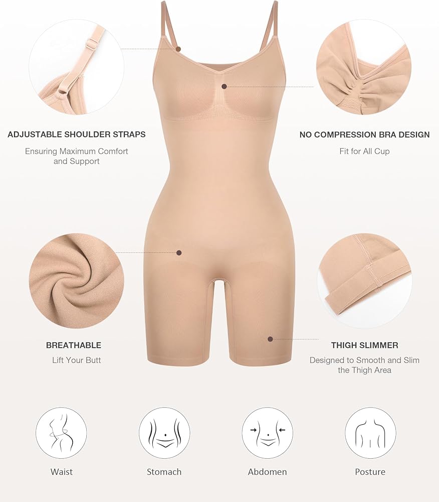 Sizing Tips: To choose a right size, please follow our size chart instead of your usual clothing size. If you are between two sizes, go for a size up. And it is normal that you feel the bodysuit is too tiny or a little hard to wear at the first try-on. That's because we use highly stretchy fabric to ensure its shaping effect.