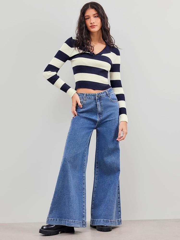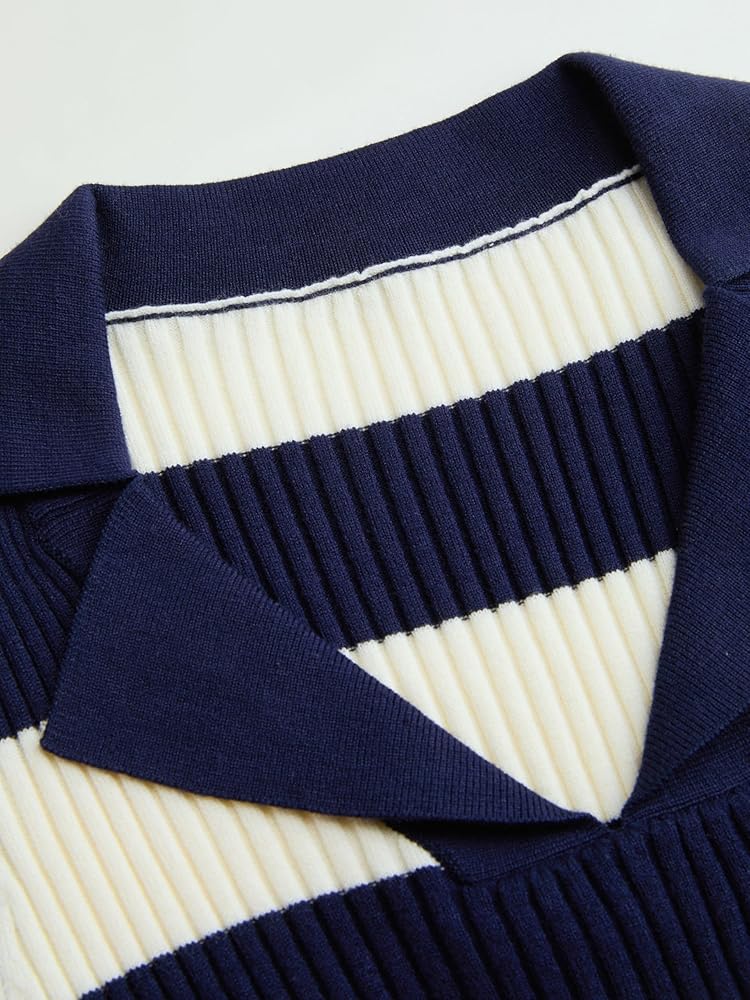 Chic and Comfortable: Its polo neckline and slim fit augment the chic appeal of this Knit Polo Striped Long Sleeve Top. The opaque knit fabric provides additional comfort and confidence, preventing any see-through mishaps while allowing you to move freely and comfortably throughout the day.