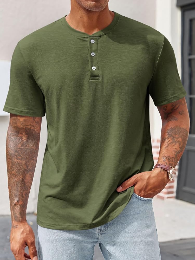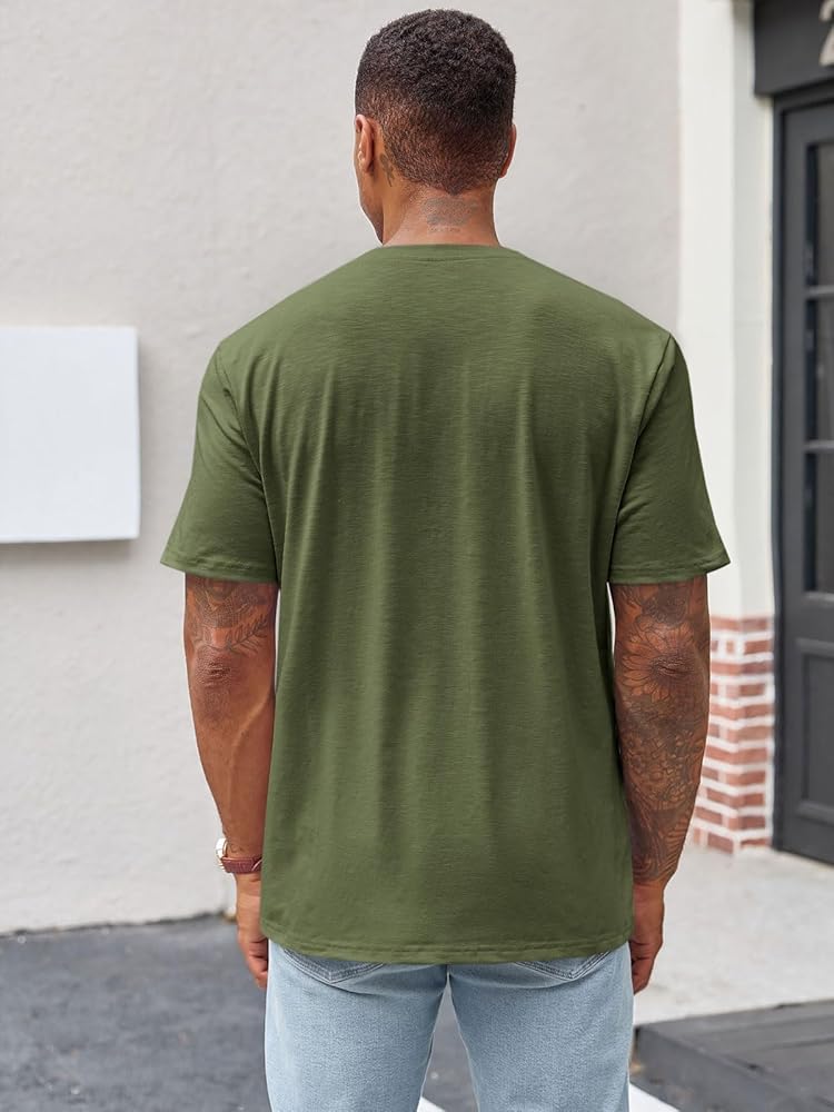 Design: Men's casual stretchy t-shirt features button closure, short sleeve, solid color, slim fit. The simple and classic design makes it timeless
