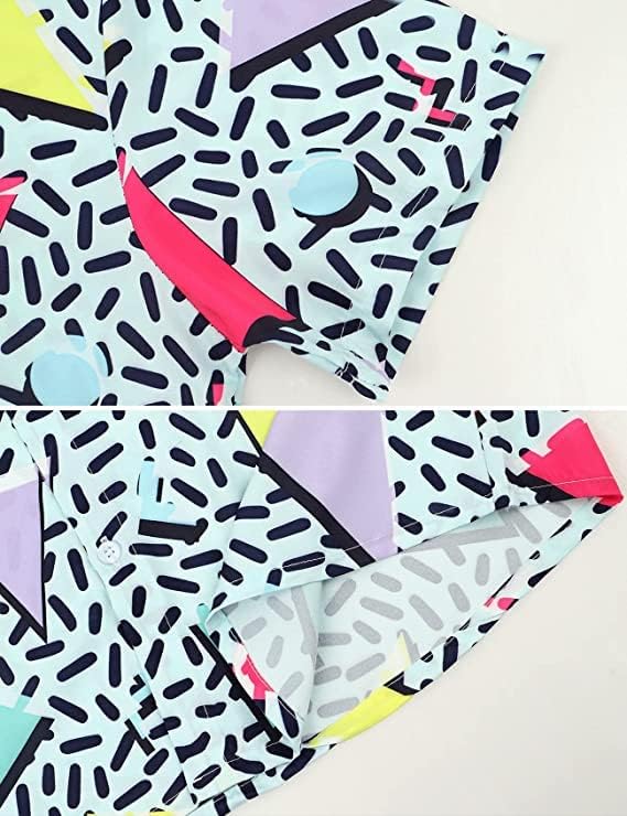 About Pattern: The Patterned are all over printing with 80s 90s theme, This Outfit is covered with 80s 90s classic patterns to make you more attractive and charming in the crowd. These can add luster to your life.The soft cotton and polyester fabric also holds up in the wash and easy to remove wrinkles with just a spray of water.