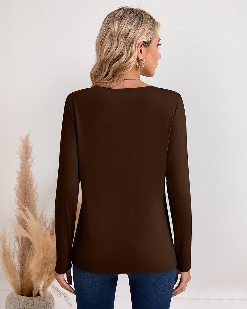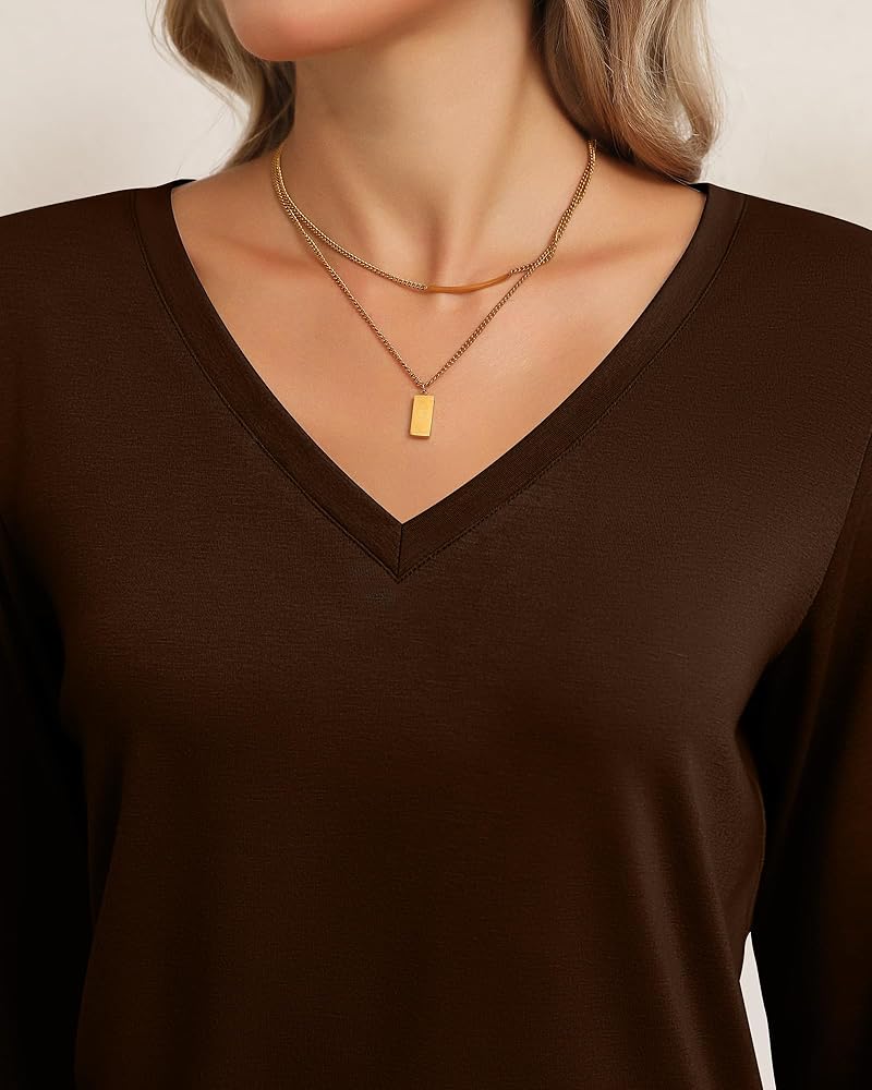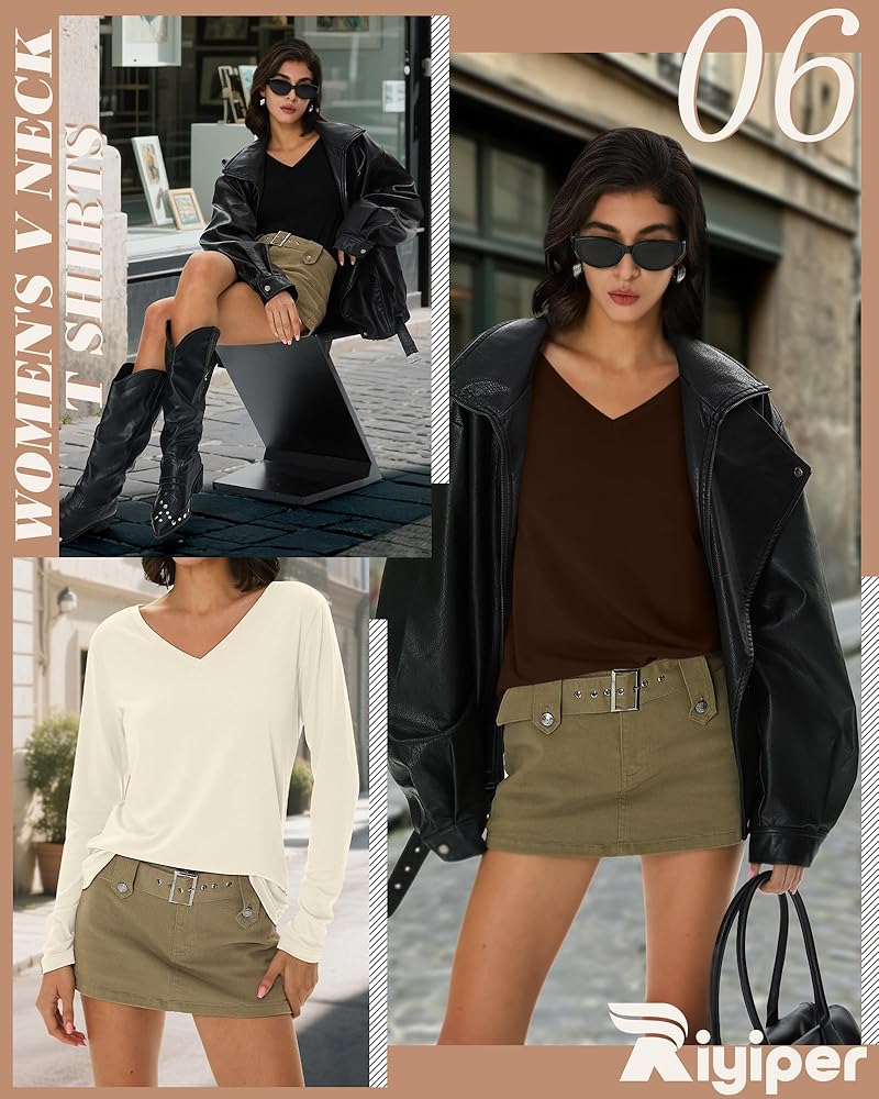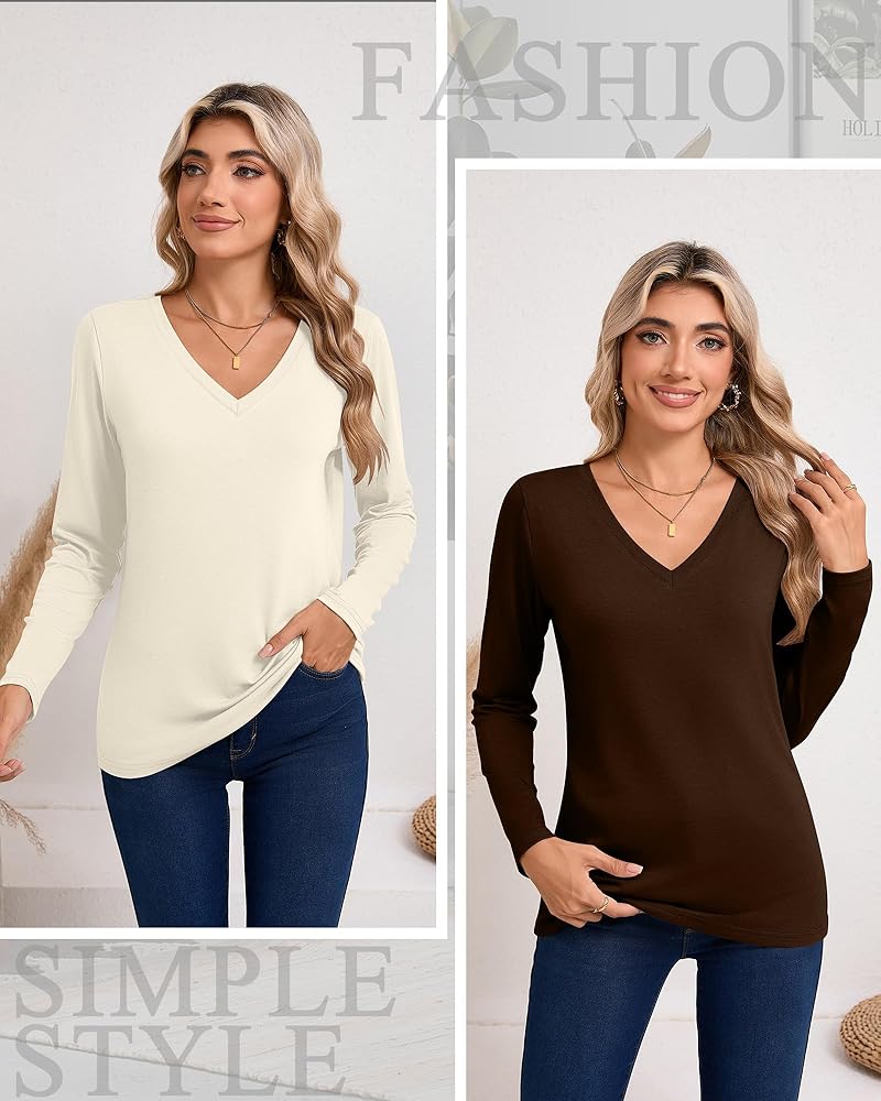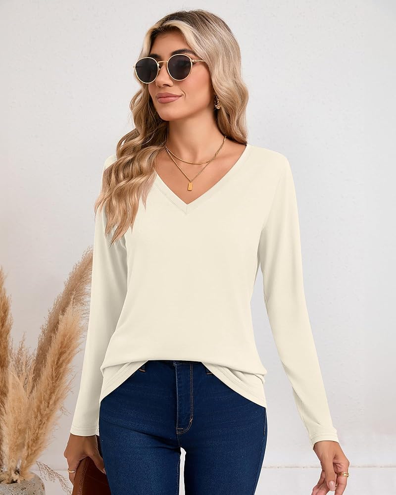 Classic Versatile Design: The low-neck T-shirts are designed with a solid color straight hemline, versatile color; our v neck shirt for women is a closet staple for any occasion, wear it with jeans and skirts or jackets in spring, and fall, and winter