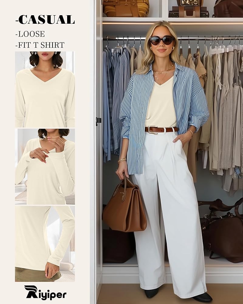 Flattering Cut: the trendy v neck t shirts for women are made of loose fit and stretchy fabric, which can adapt to various body shapes and emphasize the natural curves of the body, which will not make you feel tight and can effectively prevent girls from being exposed, which can show your femininity in any occasions