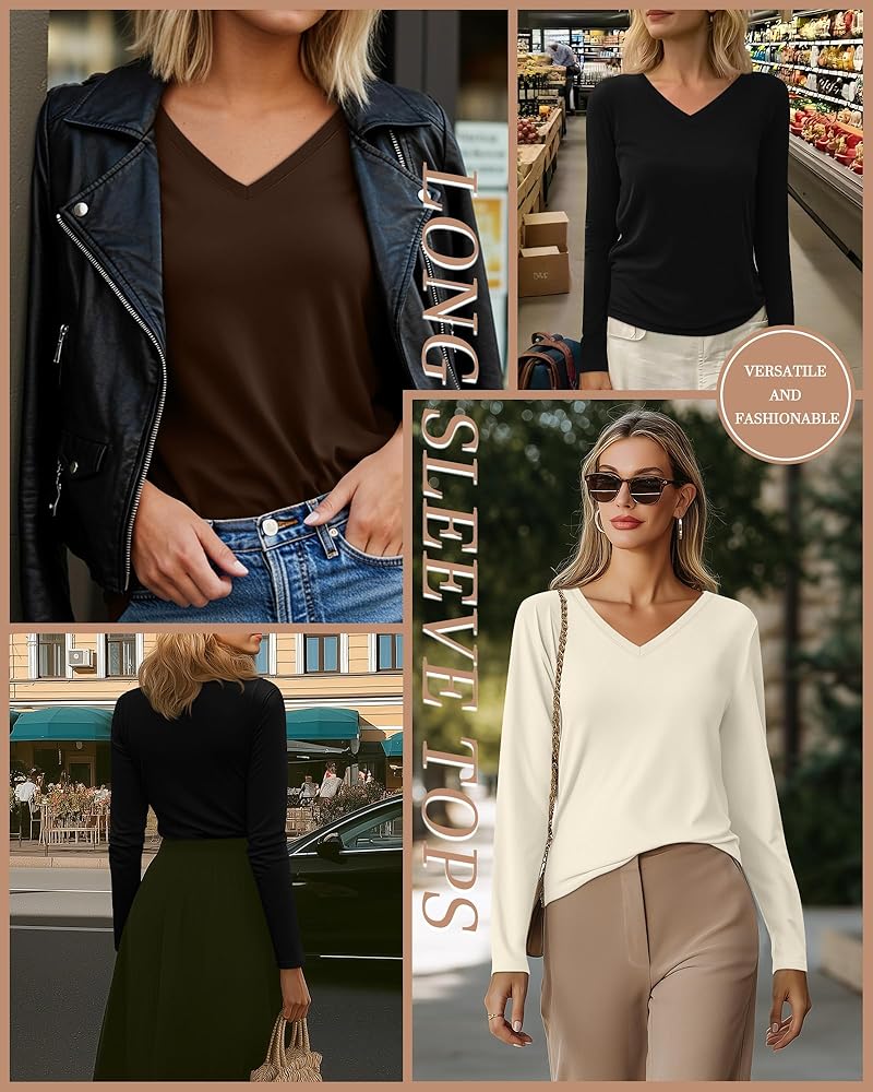 3 Pieces Basic Low Neck Long Sleeve Tops: the set contains 3 pieces of solid color women's low neck long sleeve tops in different colors, plenty of quantity to meet your daily needs, let you have a different fashion experience every day