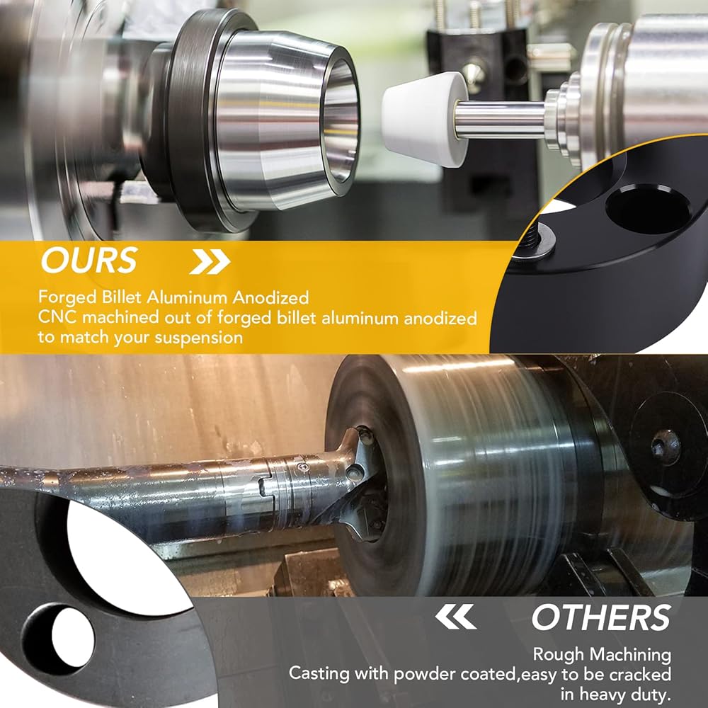 【New Experience】- Strut spacer kit can provide unmatched ground clearance to conquer on and off-Road obstacles and allowing to fit larger custom rims and tires.Accurate numerical control precision and high quality, ensure your driving safe and comfortable