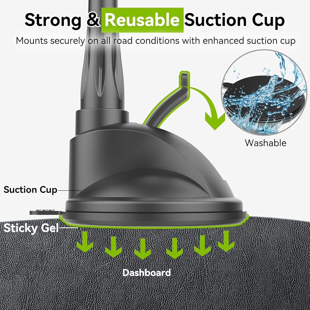 [Flexible Long Arm] Aoxuantec GPS suction cup holder for car has an 6.9-Inch bendable sturdy gooseneck aluminimum long arm, allows you to adjust a perfect viewing angle and height, ensure your safe driving. This car mount has a highly flexible ball joint provides allows qucik switching between vertically and landsacpe view.
