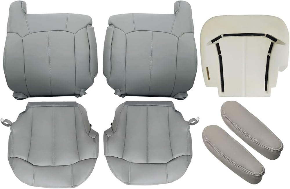 【Fitment】Compatible with Chevy Silverado 1500 2500 3500 Tahoe Sierra Suburban Avalanche 1999 2000 2001 2002 Gray , Fits Heated Seats and Non Heated Seats , Fits Power Seats and Non Power Seats Vehicles , Material Perforated Leather.