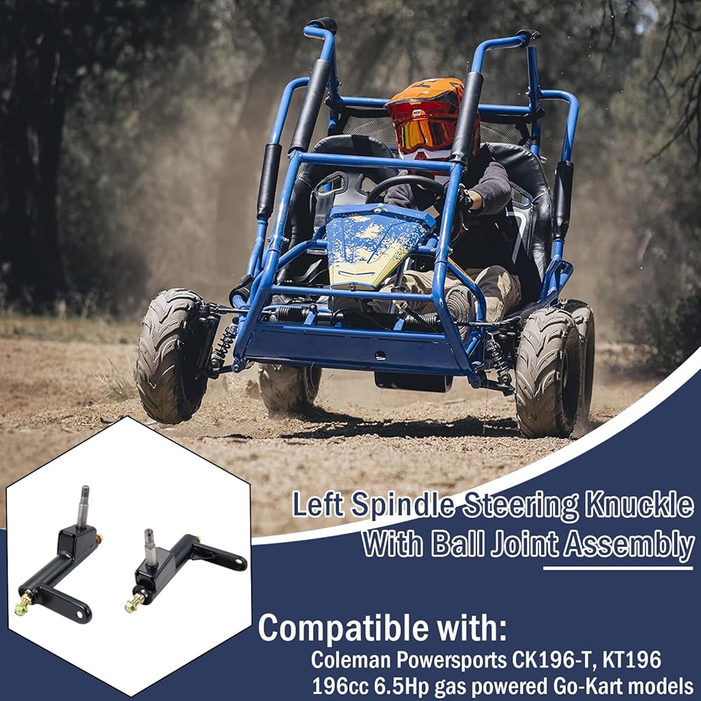【Compatibility】Left Spindle Steering Knuckle & Ball Joint Assembly compatible with Coleman Powersports CK196-T, KT196, and many other 196cc 6.5Hp gas powered Go-Kart models.