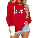 Valentine's Day Sweatshirt for Women Love Heart Graphic Shirt Valentines Long Sleeve Tee Tops Valentine's Day Sweatshirts Women Cute Love Heart Long Sleeve Pullover Blouse