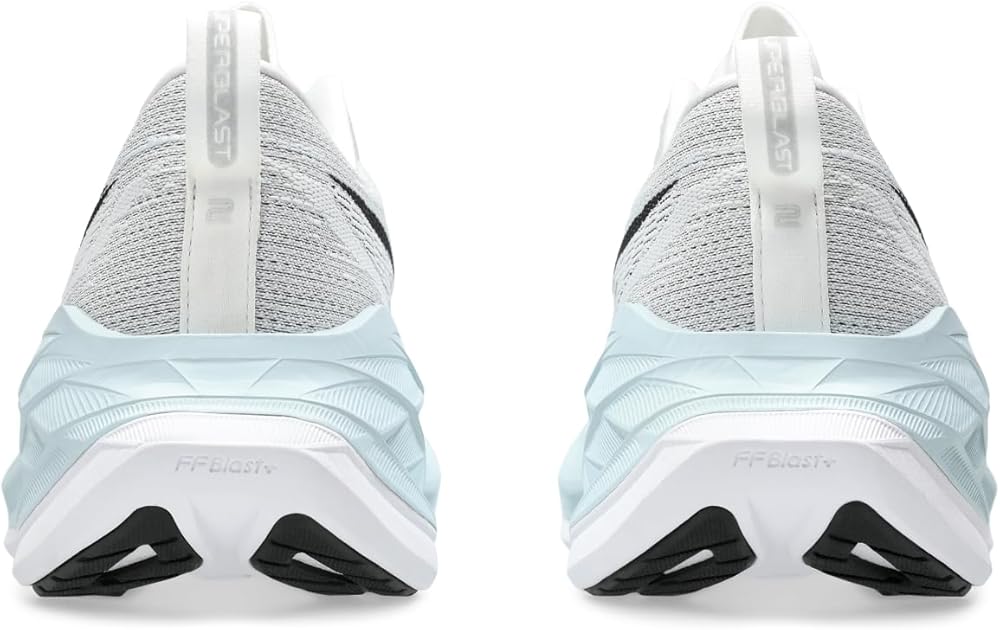 Move from feeling standard to super in the SUPERBLAST 2 shoe. It's designed to help provide the most responsive, energized feel compared to other shoes in the ASICS cushioning range. The midsole features a combination of FF BLAST PLUS and FF BLAST TURBO cushioning. Also used in our METASPEED racing models, this foam helps create one of the lightest and bounciest running experiences. This shoe's upper construction features an asymmetric mesh design. It features different colors on the medial and lateral angles of the shoe for visual interest. Polyester upper and lining. Ethylene vinyl acetate insole. Lace-up closure in a round toe silhouette. Pull loop in back for easy entry. FF BLAST (FLYTEFOAM BLAST) TURBO cushioning improves compression and creates a responsive feel underfoot. Engineered mesh upper material improves airflow and fit. Gusseted tongue wing fit system Improves the midfoot fit and reduces tongue sliding. The heel stabilizer helps support the foot and create a more balanced stride. FF BLAST PLUS technology cushioning provides lightweight impact absorption and a responsive rebound. AHARPLUS heel plug rubber. Improves the outsole durability. Paired with trampoline-inspired outsole design provides a more responsive bounce back. Synthetic rubber outsole.