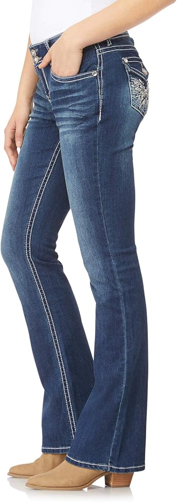PERFECT FIT: Your look isn't complete without our mid rise, curve enhancing, bootcut jeans. Contoured waist (no more waist gap!), roomier in the hips and thighs and 5-pocket styling. We are size inclusive, which means – Made for Every Body – Great jeans for all women. Period.