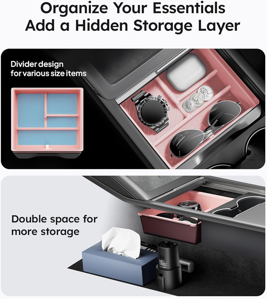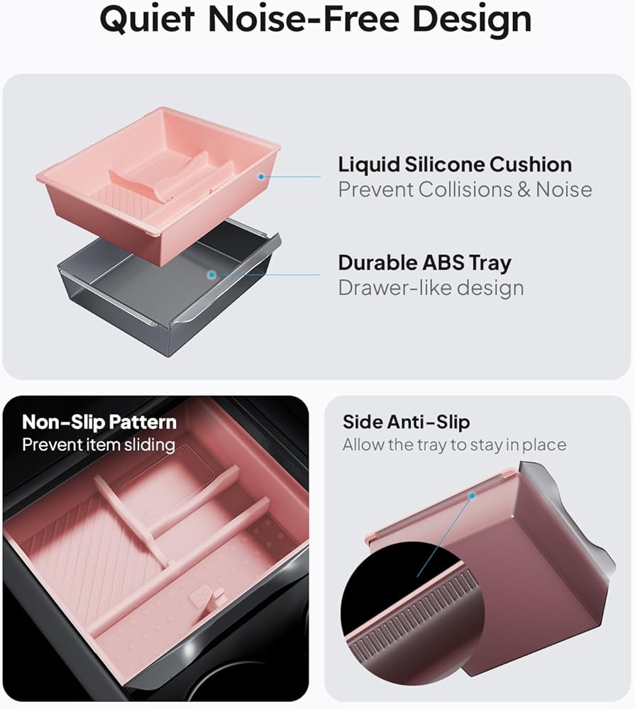 【Silent and Smooth Rides】No more annoying rattles! This Tesla accessory uses liquid silicone lining to reduce noise and protect items. Drive in peace, knowing your belongings are cushioned and won't slide around in your Tesla Model 3 2024-2025