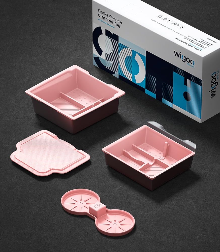 Wigoo 2025 Upgrade Tesla Model 3 Accessories Console Organizer 4PCS Set [Center Console Organizer & Armrest Organizer & Hidden Storage Box & Cup Mat] for Model 3 (2024-2025)