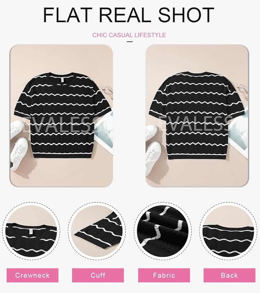 Unique Design: Stylish Striped Pattern,Comfortable Crewneck Design and Unique Crochet Bring you Youthful Vitality and Fashion Sense. At the Same Time, the Texture of the Knitted Fabric Also Makes this Cropped Knit Tops an Ideal Clothing Choice