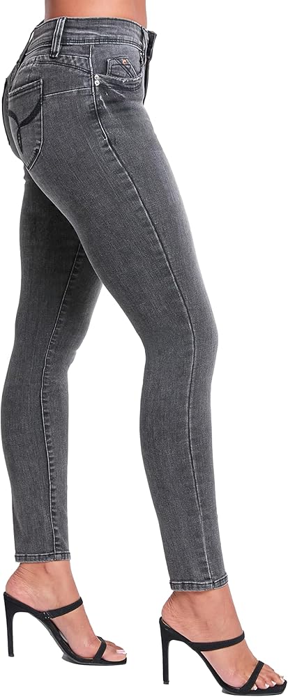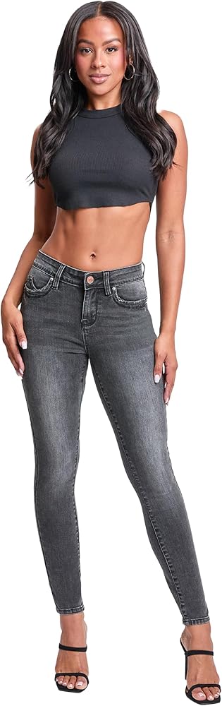 The jeans are made from a blend of cotton, polyester, and spandex, offering a comfortable stretch that moves with the body while retaining its shape throughout the day