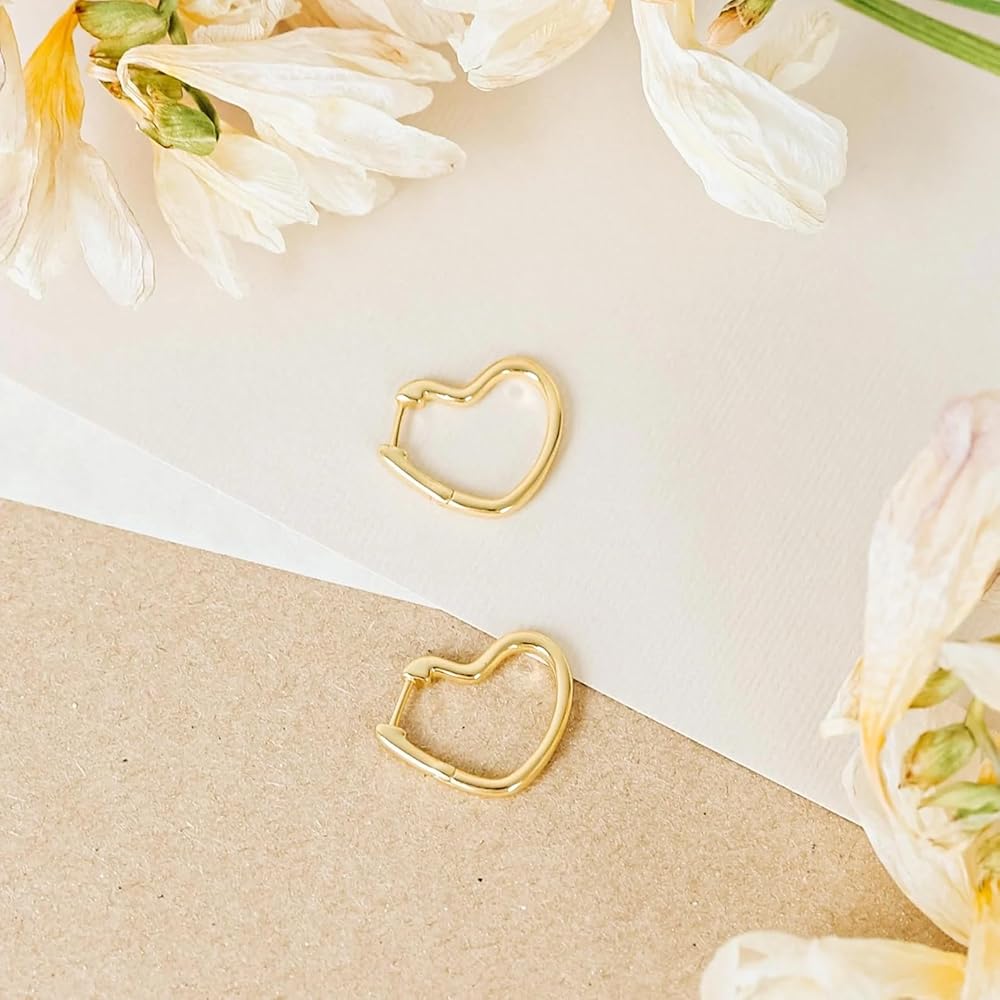 Heart Hoops ✧ Add a little love to your or a loved one's jewelry collection with our 18K Gold Sterling Silver 1-inch heart hoop earrings for women. This trendy design is perfect for adding a fun, flirty touch to your everyday outfit. This heart shape hoop design is also perfect as a birthday, Valentine's Day, Mother's Day, and Christmas gift.