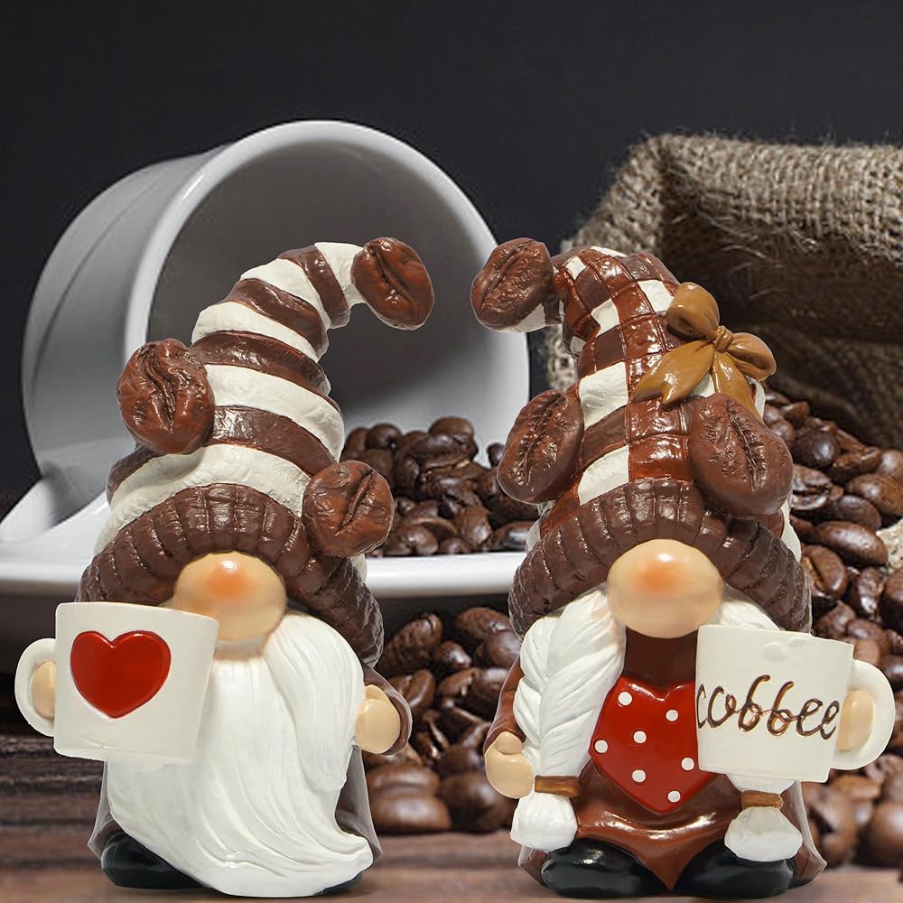 Hodao Resin Coffee Gnomes with Mug Nordic Style Home Bar Decor, Collectible Figurines 4.1inchSwedish Handmade Statue Small Figurine Ornament Gift for Coffee Lovers-a Set of 2