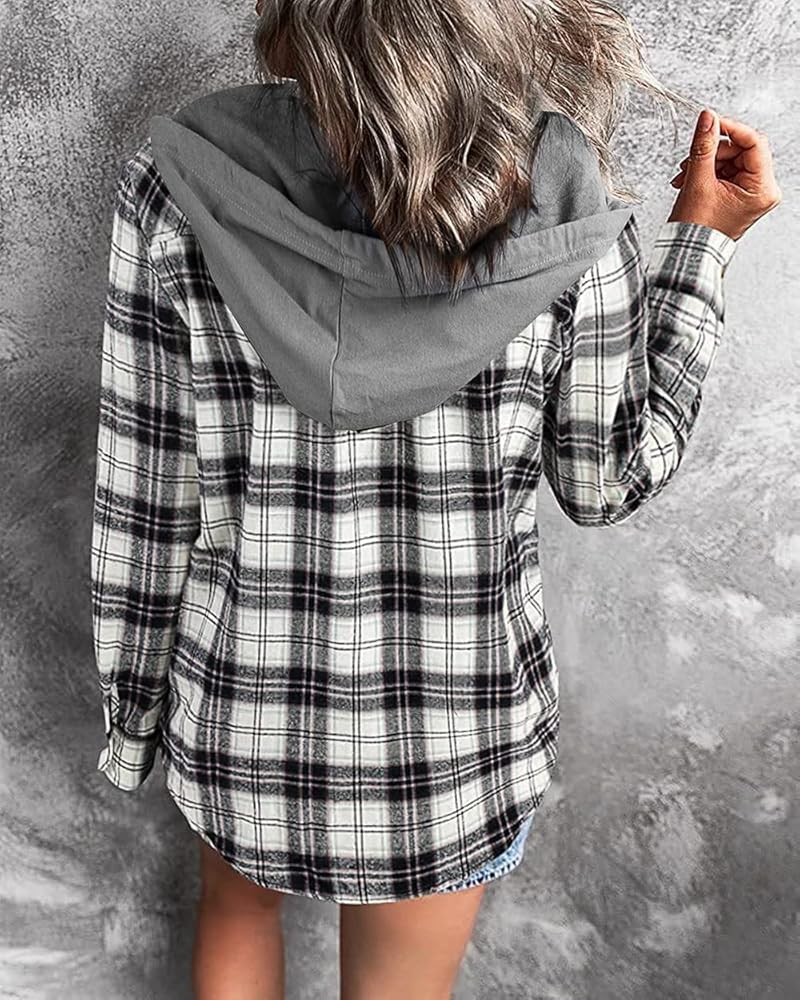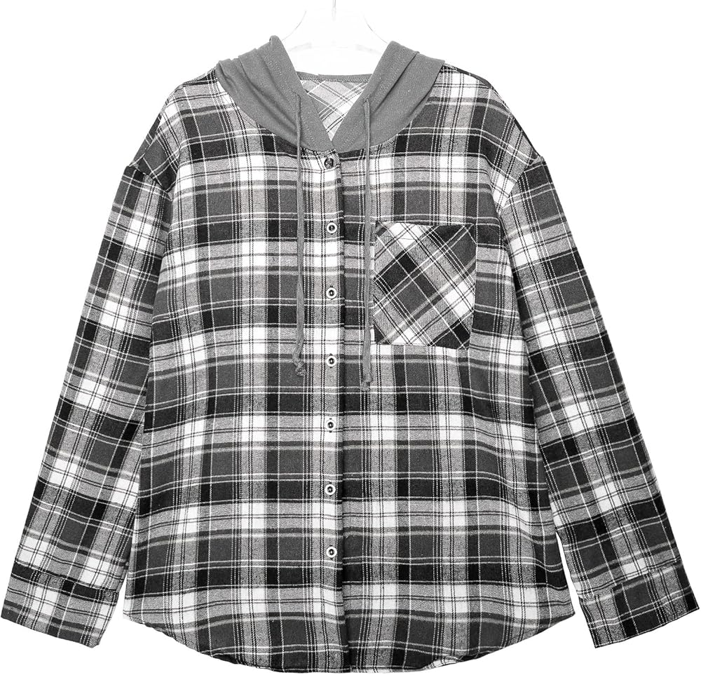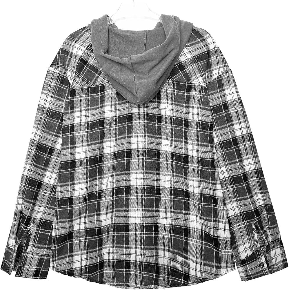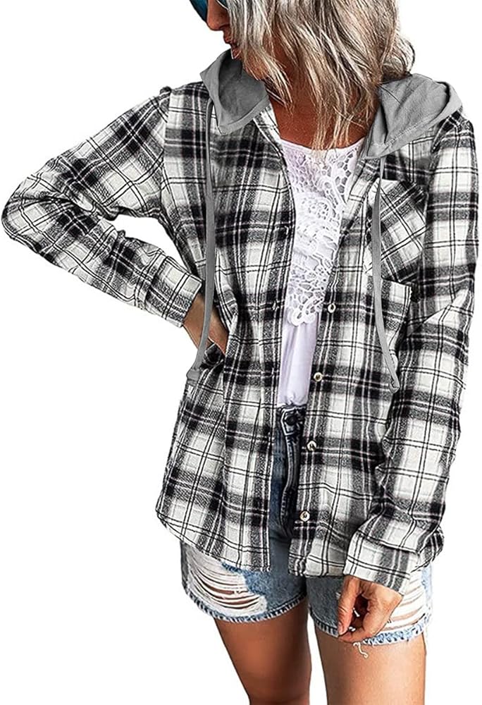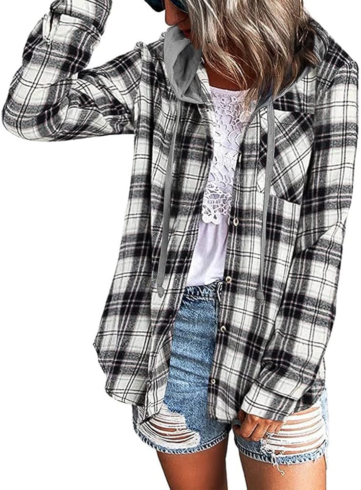 Design : The women hoodie plaid blouse shirts feature front button down closure, plaid print shackets, one functional front chest pockets, drawstring hooded, long sleeve, curved hem, boyfriend style, loose fit. for summer fall and winter seasons.