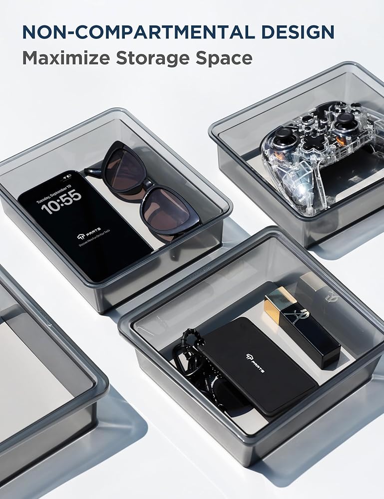 Elegant, smoke gray and translucent design allows light in. Makes your essentials easy to access at night