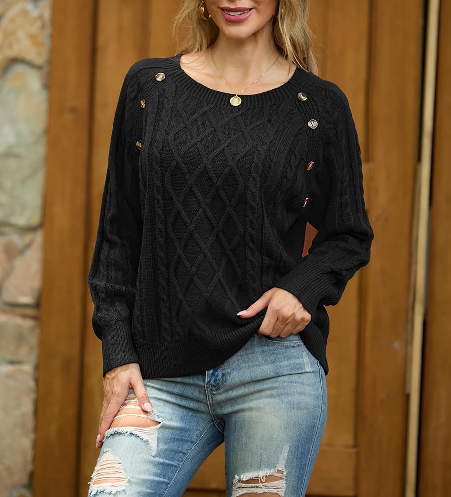 This trendy sweater made of full acrylic fabric for excellent warmth, soft to touch, lightweight and stretchy. Machine washable, avoid alkaline detergent and do not bleach