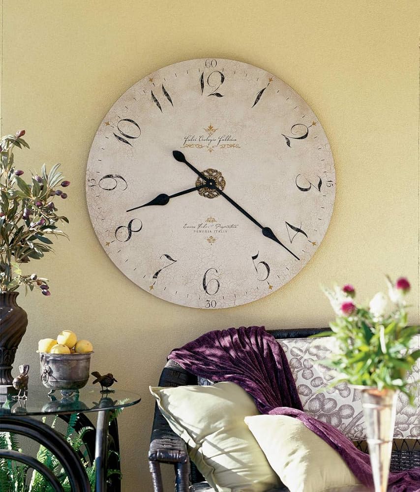 This Bingham Farms Wall Clock by Howard Miller features an antique medallion accent with gold highlights, antique black hands, and Arabic numerals. Quartz movement requires one AA sized battery (not included).