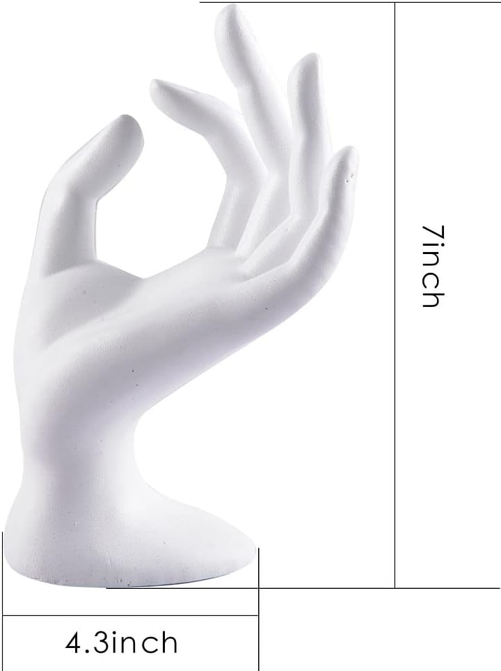 Size Information - The hand-shaped jewelry display stand measures 6.7 x 3.1 inches (17 x 8 cm), while the cone-shaped ring stand measures 2.6 x 1 inch (7 x 2.5 cm). With ample space to hold multiple rings on each finger, this compact jewelry holder fits easily on tabletops, providing practical and stylish storage without taking up much space.
