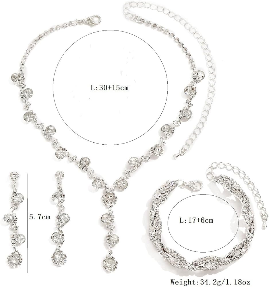 Silver Necklace and Earrings Sets for Women: This necklace earrings bracelet set is perfect to wear on any occasion, such as prom, wedding, anniversary, engagement and other events or any other special occasions, more suitable to match with evening dresses, wedding dresses, bridesmaid dresses