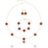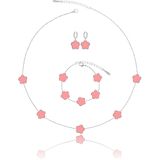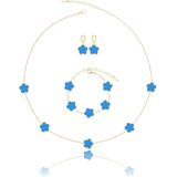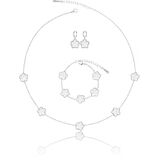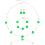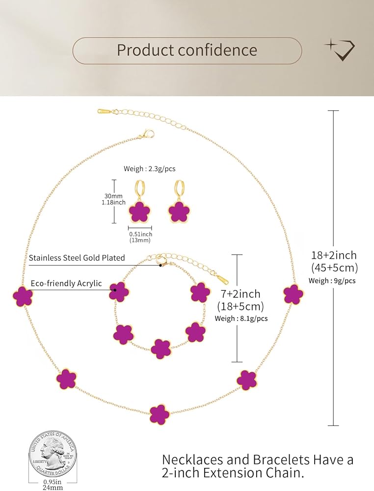 A Five Leaf Clover Necklace Bracelet Earring Set. These Luck Flower Shaped Jewelry Bracelet Measure 0.52" High 0.5" Wide, 7 + 2 inch Chain, Dangle Earrings Measure 0.52" High 0.5" Wide, Necklace Measure 0.52" High 0.5" Wide, 18 + 2 inch Chain . The Weight of These Dainty Bracelets Necklaces and Drop Earrings Set is 20g. Hypoallergenic and Nickel free. Gorgeous for Bridesmaids, Prom, Homecoming, Mothers of Bride and Special Occasions; Great for Jazzing Up Causal Attire as Well.