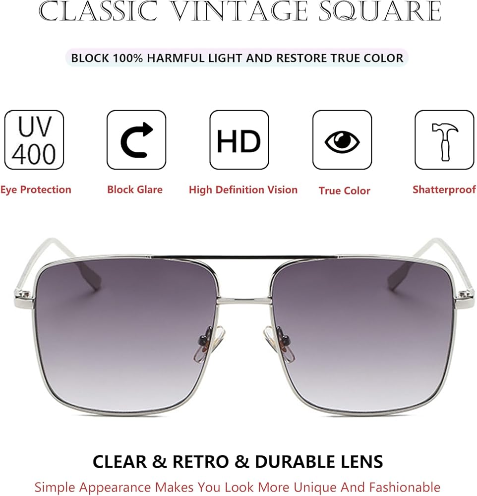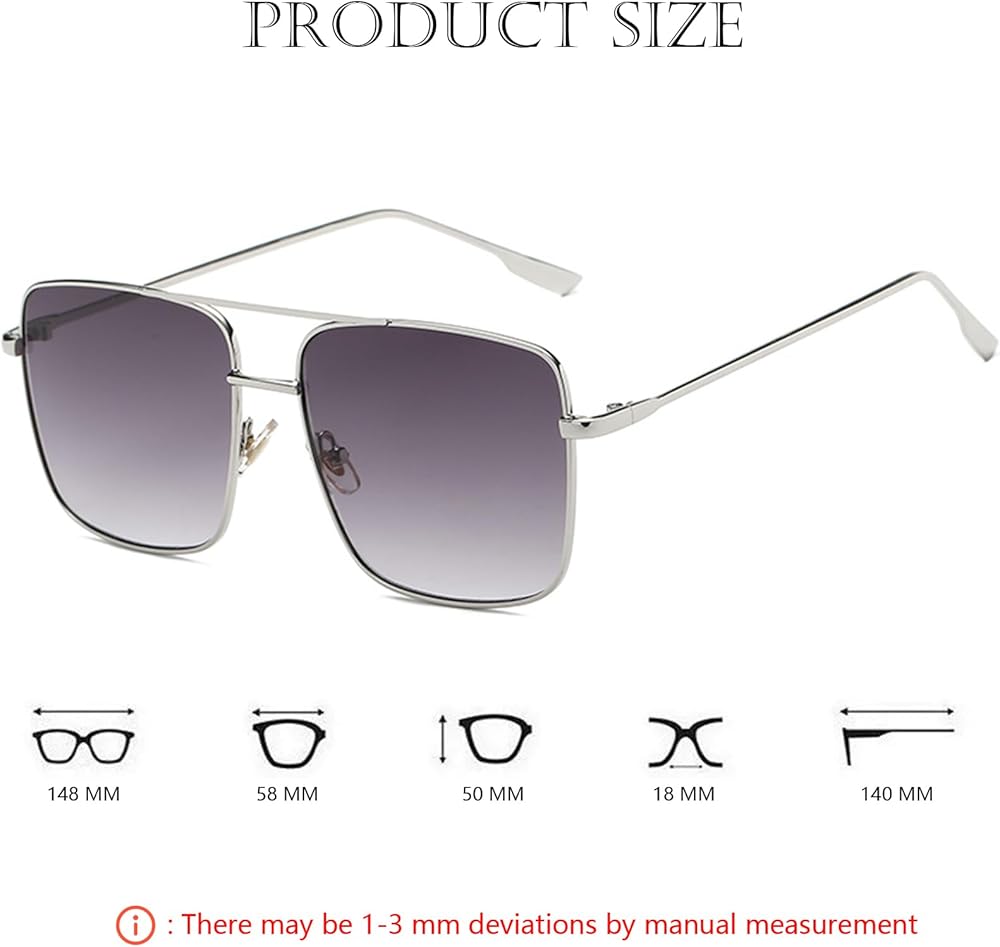 These sunglasses are designed to withstand daily wear and tear, making them perfect for any occasion. Whether it's the urban streets, beach vacations, or outdoor adventures, this pair of large square double-bridge metal frame sunglasses can become your indispensable fashion item. It not only protects your eyes, but also shows your unique personality and style.