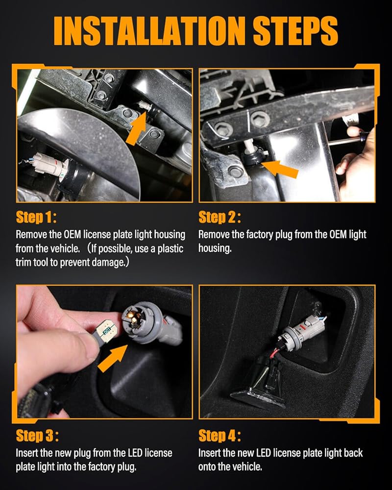 【Plug & Play, Effortless InstallationPlug n play design allows for a hassle-free 10-minute installation process. Simply remove the original OEM bulbs, connect the plug for a quick and easy upgrade to LED without any modifications needed. Install one set of LESAUCE led license plate light for tacoma, save your time and money