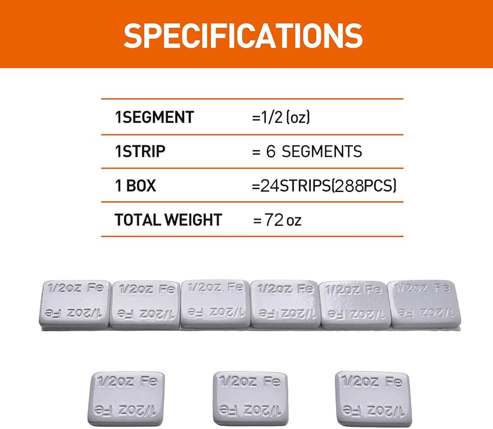 Easy Application Tape: The Four-Season Tape featured on our wheel weights offers exceptional adhesion, with a wide paper backing designed for effortless peeling. Achieve precise placement and secure attachment with this user-friendly tape for hassle-free installation.