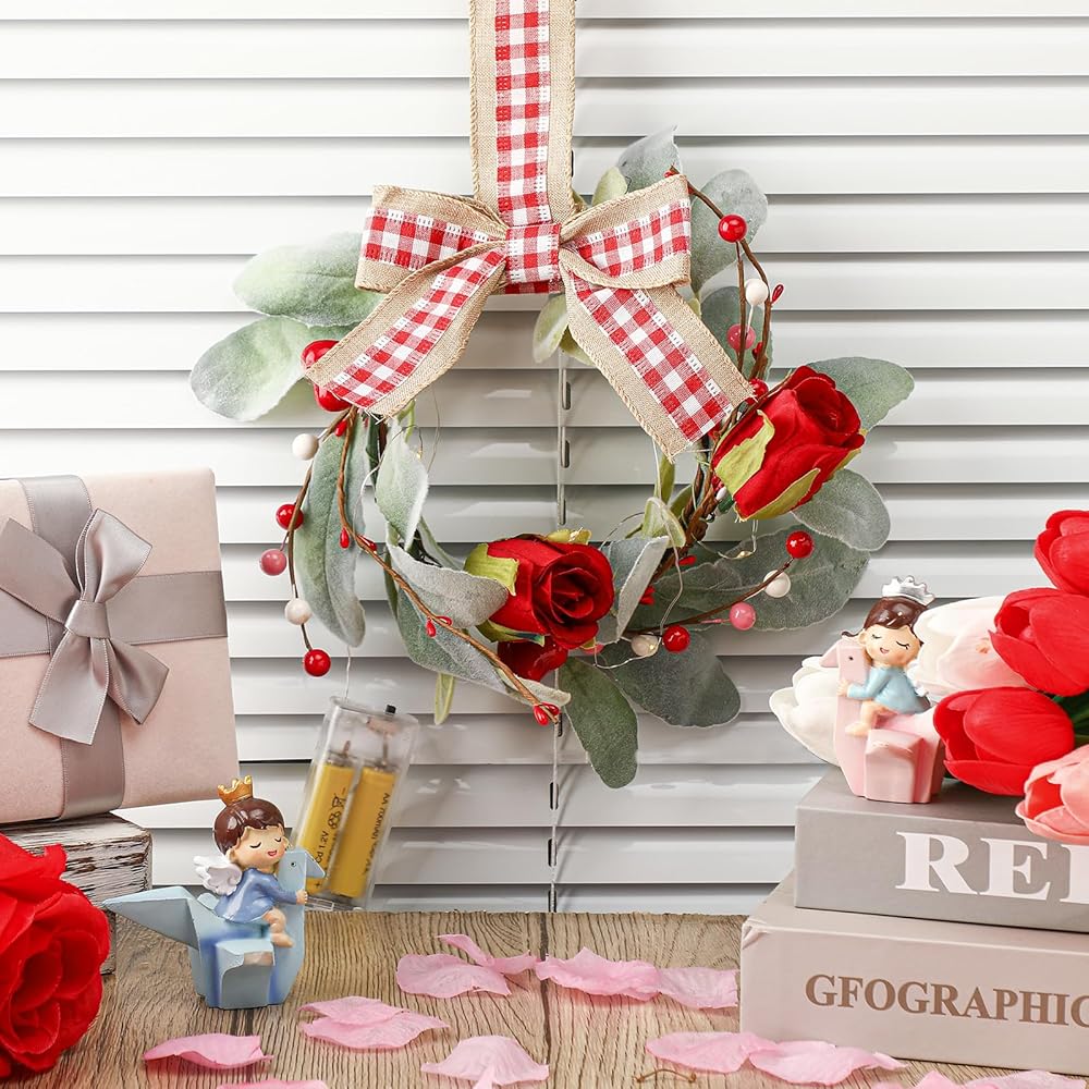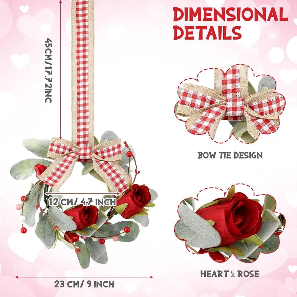 Decorate Your House: the red rose wreath is ideal for indoor and outdoor decoration, just hang them on your fireplace, front door, walls, in your bedroom, kitchen, dining room, garden, office, cafe, restaurant, bookstore, apartment, hotel and other places, adding a sense of Valentine's Day ;Also suitable as a valentine gift for your family, friends, neighbors, or colleagues