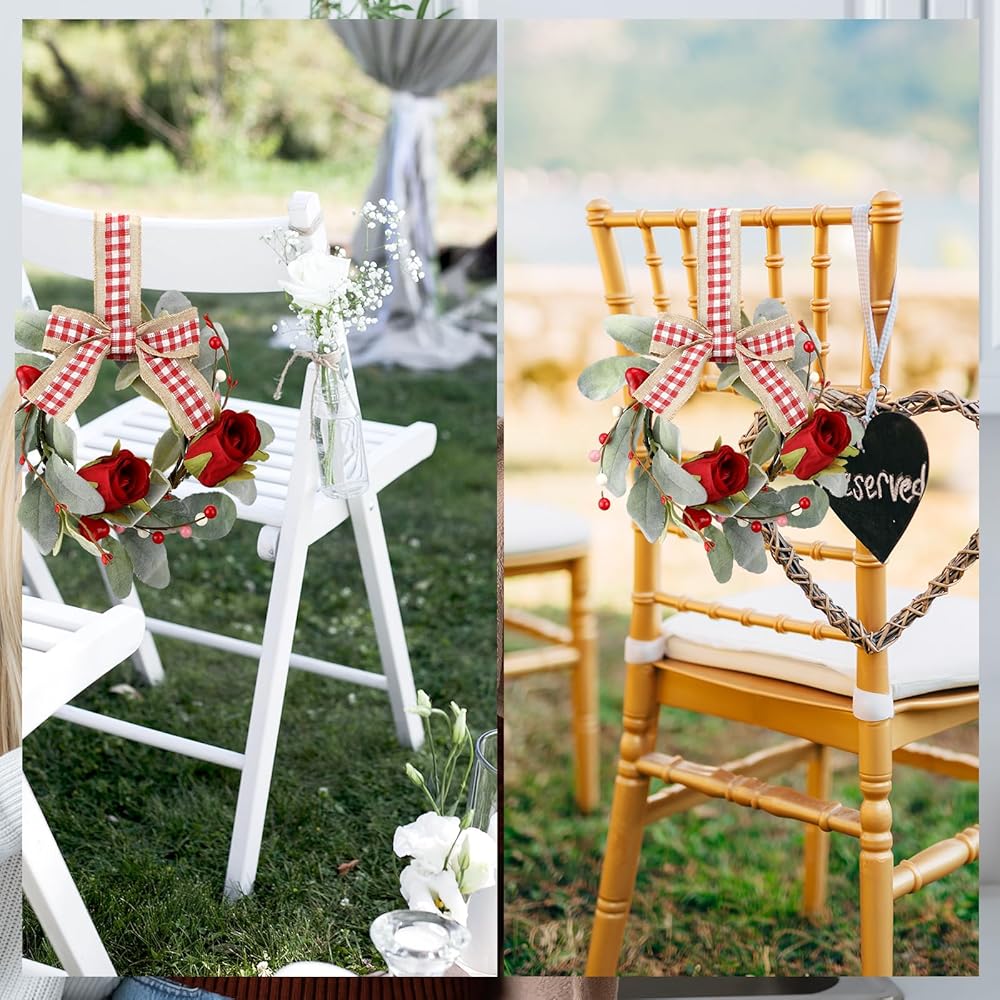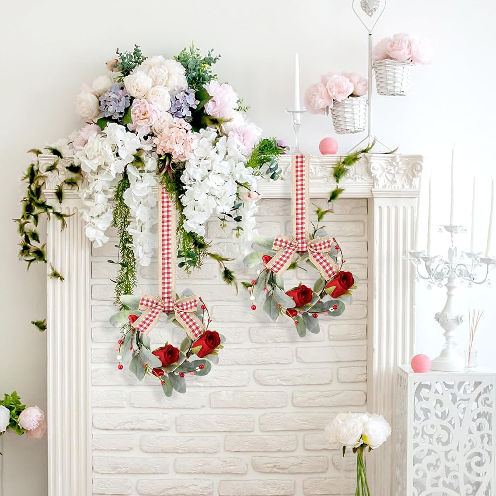 Valentine Wreath Set: the package includes 2 pieces of faux red rose cabinet wreaths, cabinet wreath comes with an elegant with a faux burlap red white buffalo plaid bow, heart and rose wreath is full of romantic atmosphere, suitable for a Valentine's Day home decor addition