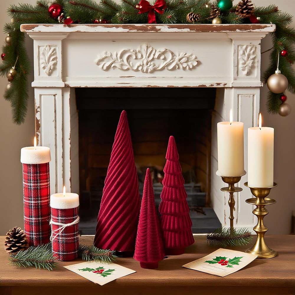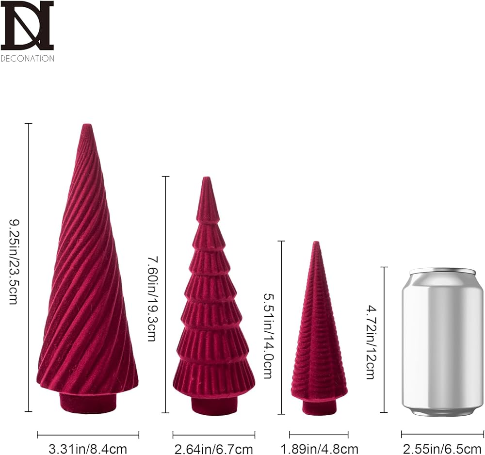 Perfect for Bedroom and Mantel Decor: Bring the magic of the holidays into your personal spaces with these table top Christmas trees(9.25x3.35in, 7.48x2.56in and 5.51x1.97in). Ideal for bedroom Christmas decor and mantel decorations, they add a touch of elegance and warmth. The spiral textured surfaces complement any Christmas bedroom decor style, from boho to rustic. Use them to create a cozy and inviting atmosphere, making your bedroom Christmas tree a focal point of the room.