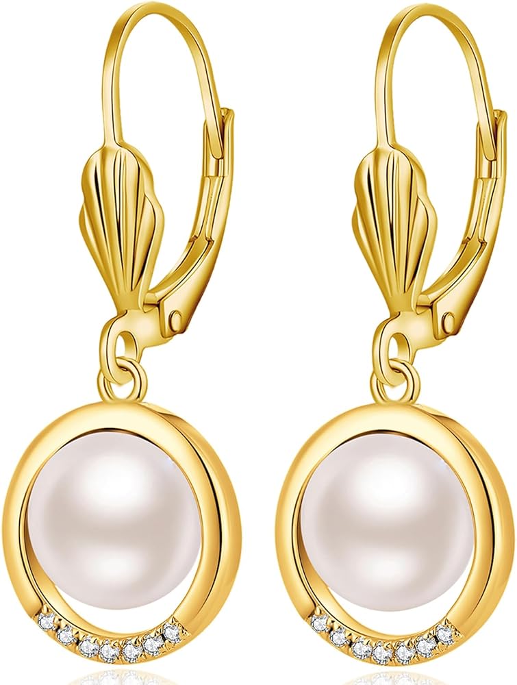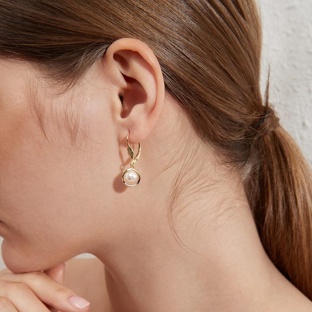 2.Material: 925 sterling silver pearl drop earrings for women,simulated pearl leverback earrings and 4a cubic zirconia pearl earrings.