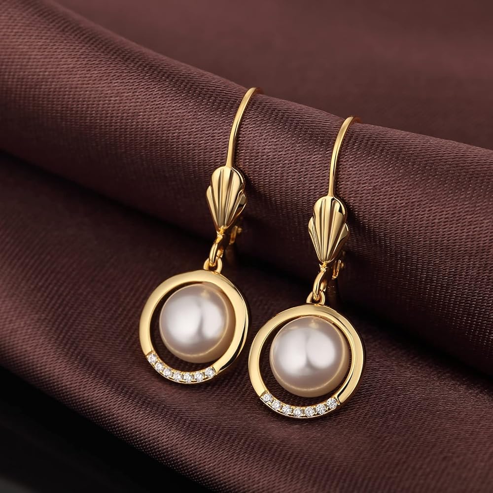 1.Pearl drop earrings for women 925 sterling silver leverback drop earrings, dangly pearl dangle earrings,shiny cubic zirconia pearl earring for women.