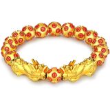 Vanski Feng Shui Amulet Bracelet Prosperity Golden Bead Bracelet with Pi Xiu/Pi Yao Attract Lucky Wealthy Bangle for Women/Men