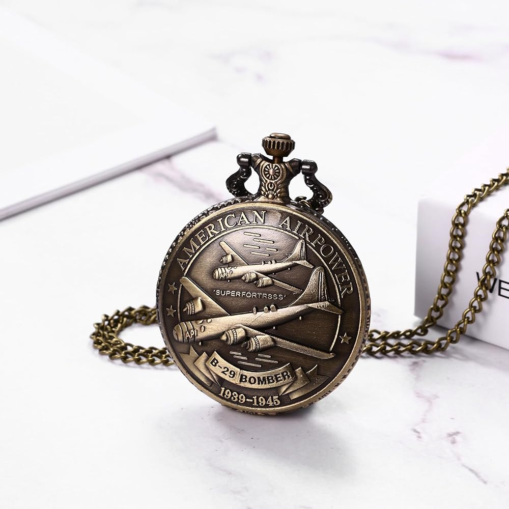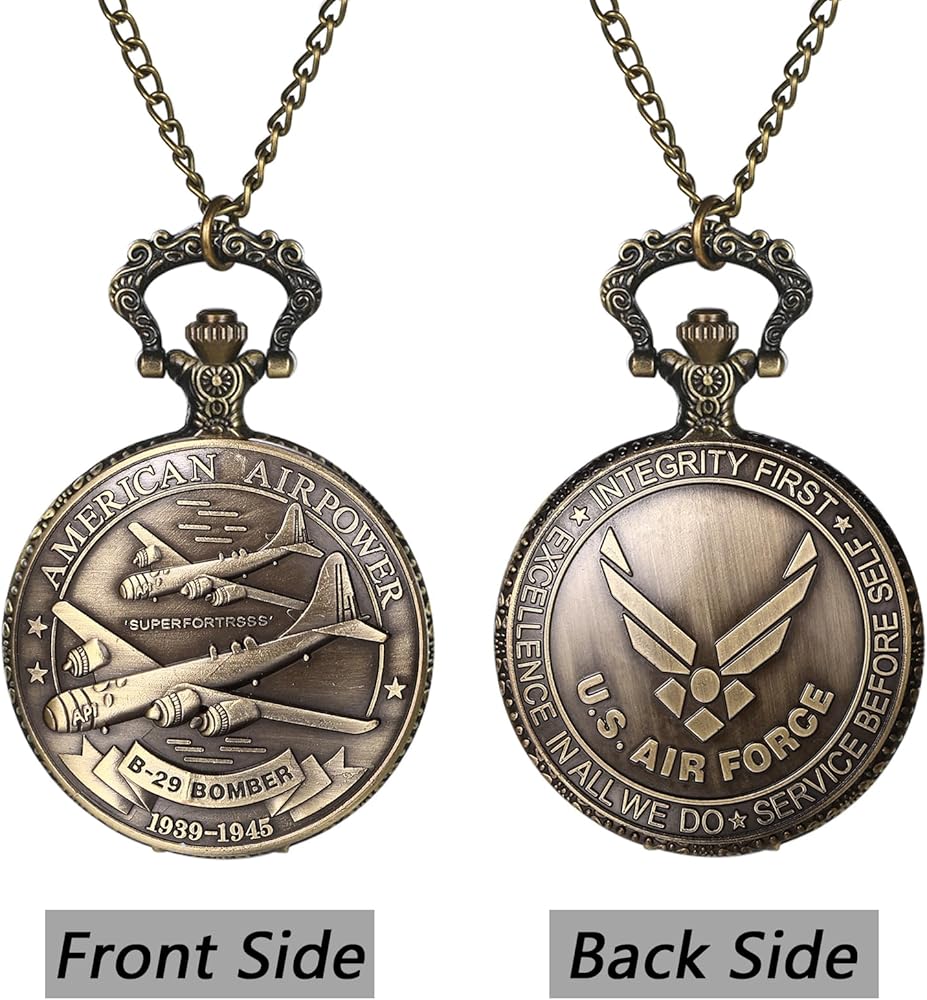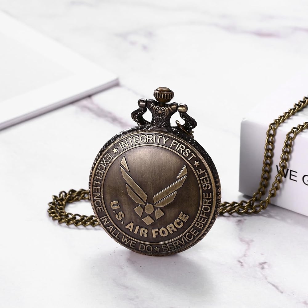 STYLISH: Stylish bronze pocket watch with United States navy pattern design. black hands match with white dial, the retro pocket watch nicely balances a vintage charm with modern day convenience.
