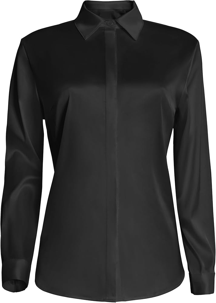 Material: This satin button down shirts for women is made of stretch satin (96% polyester / 4% spandex), has a beautiful smooth shiny silk satin side with a modest matte finish on the back. Light and silky texture, refreshing, comfortable, skin-friendly and breathable, very suitable for all seasons.