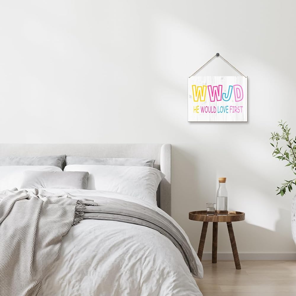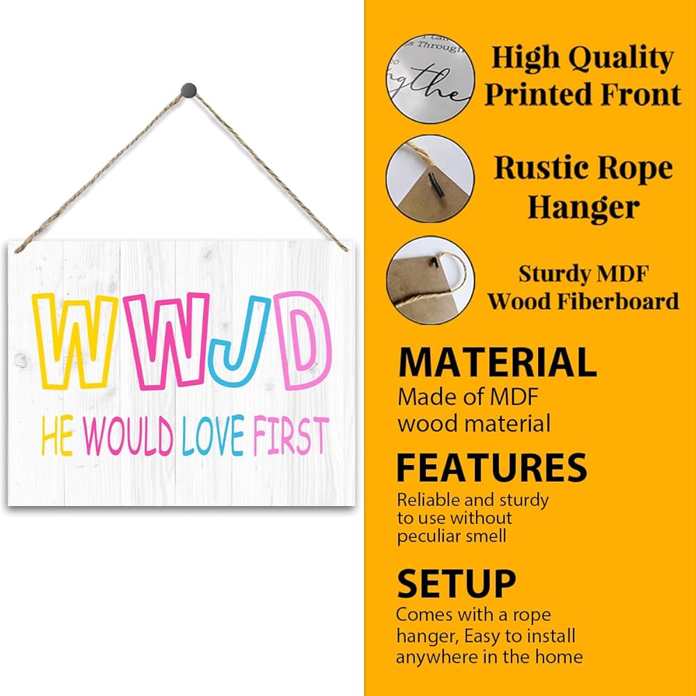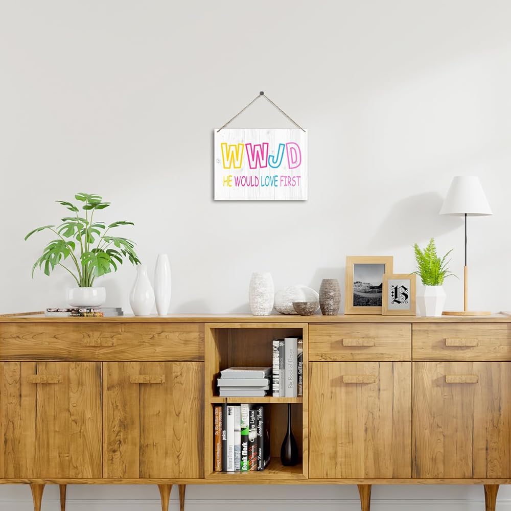 WWJD He Would Love First Wooden Wall Art for Home Christian Room Decor Door Hanging Signs for Jesus Wall Decor Wood Hanging Plaque Signs for Rustic Wall Art Catholic Gifts Bible Gifts for Women - Y335