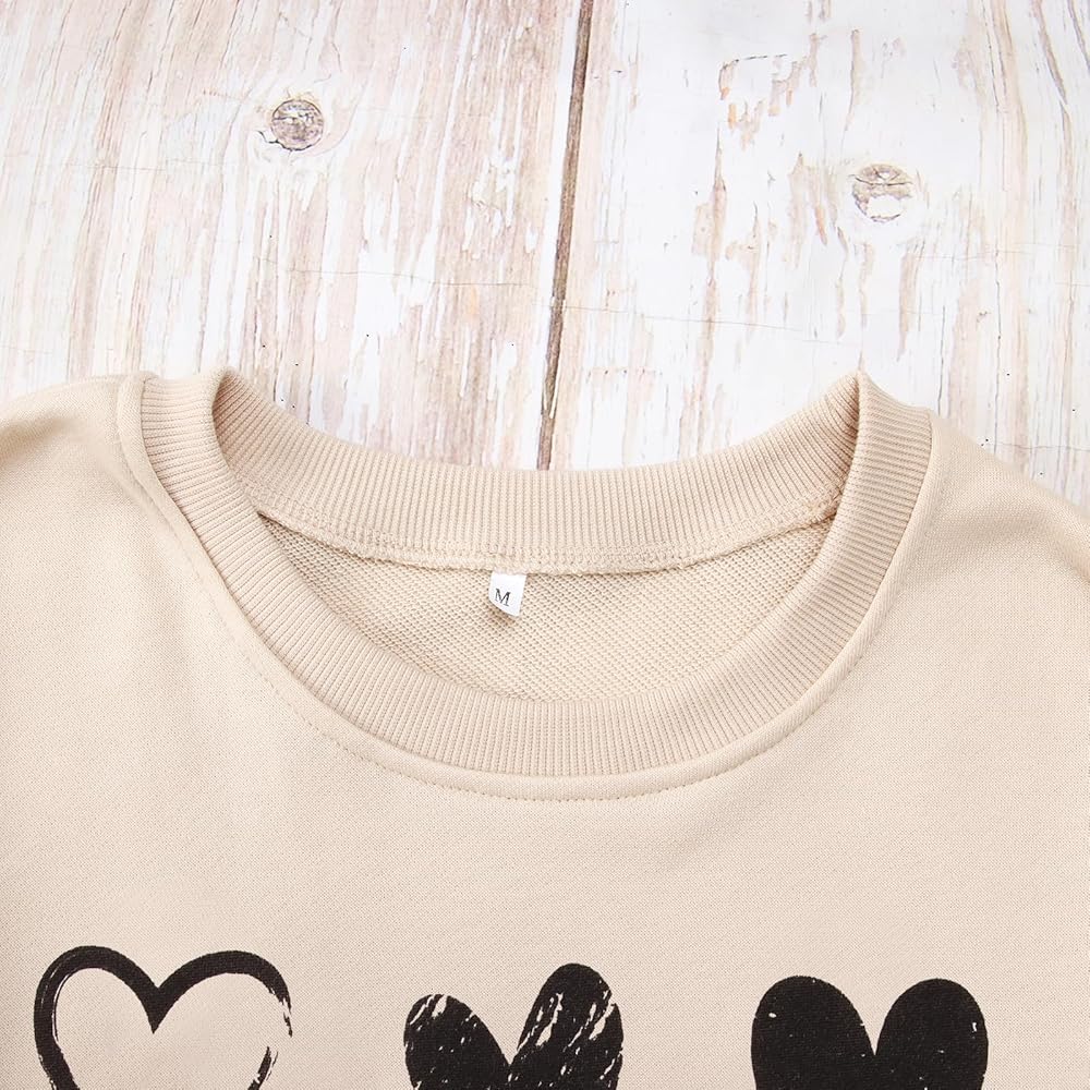 【Love Heart Sweatshirt】This valentines day shirts women features a LOVE letter printed. Love Heart graphic Shirt Sweatshirt. The crewneck design and long sleeves make it a versatile option for wearing to valentine's day parties.