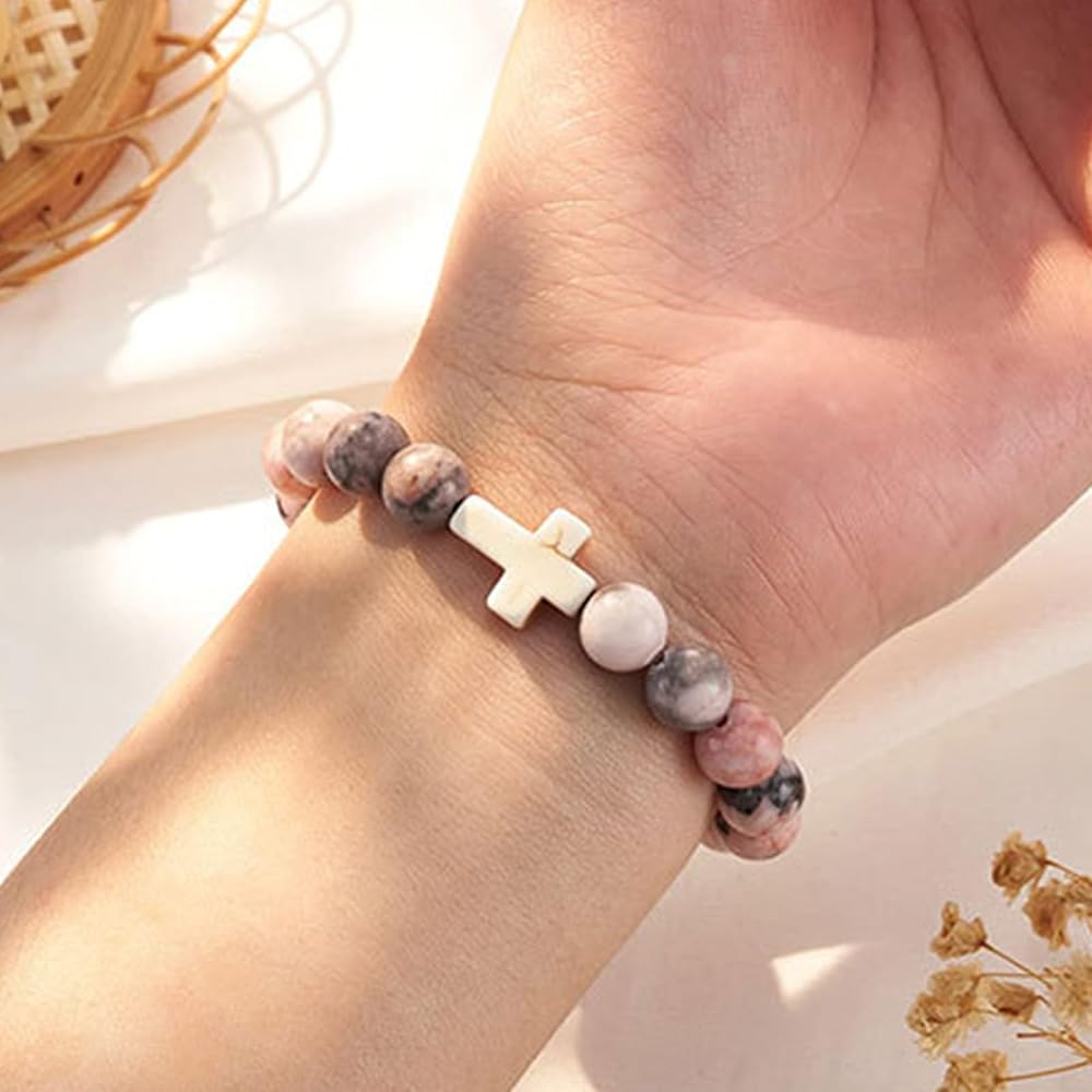 Material: This cross beaded bracelet is made with premium natural stone beads paired with a cross charm, lightweight and easy to wear. The natural stones used in the bracelet are believed to have healing properties and can promote a sense of calm and peace in the wearer.