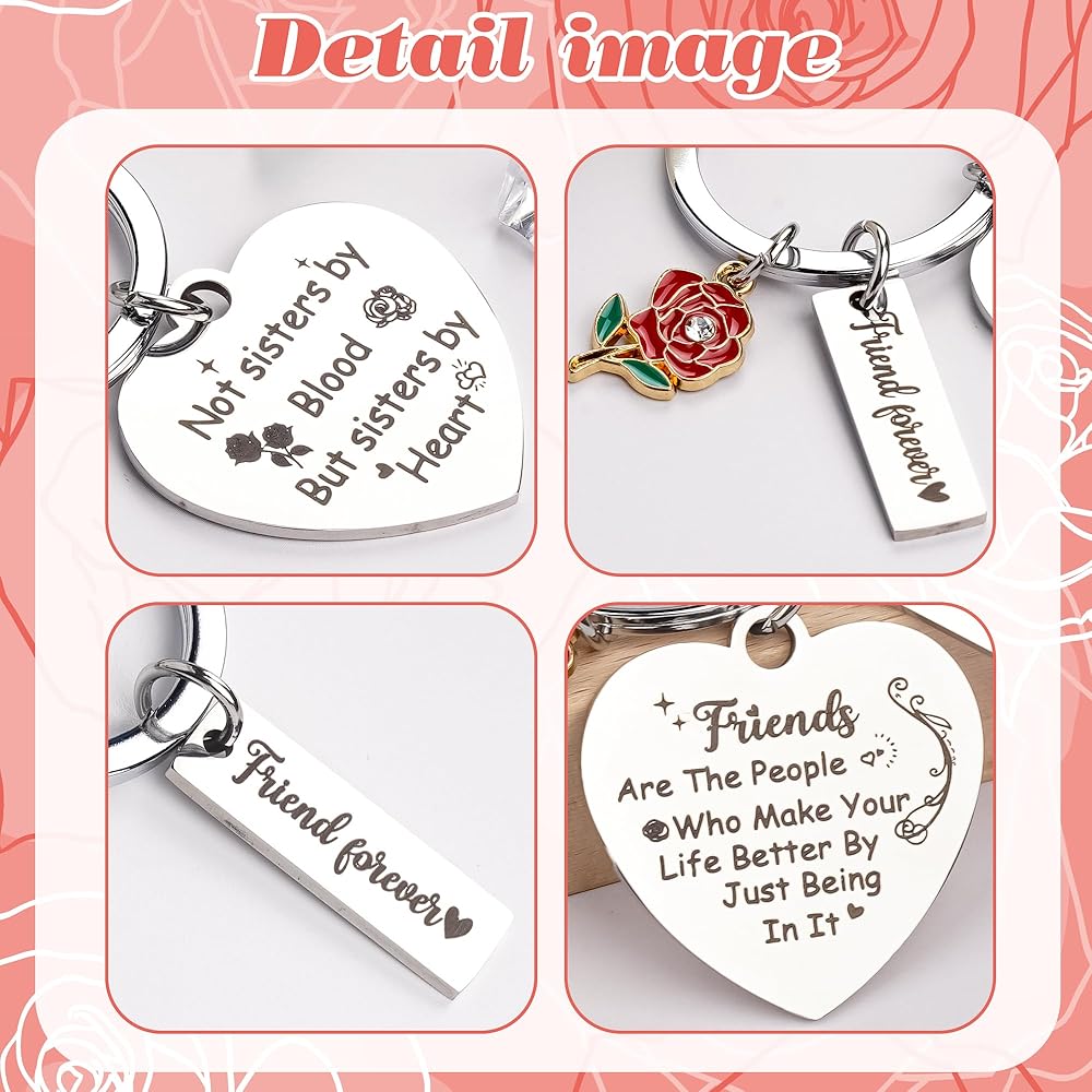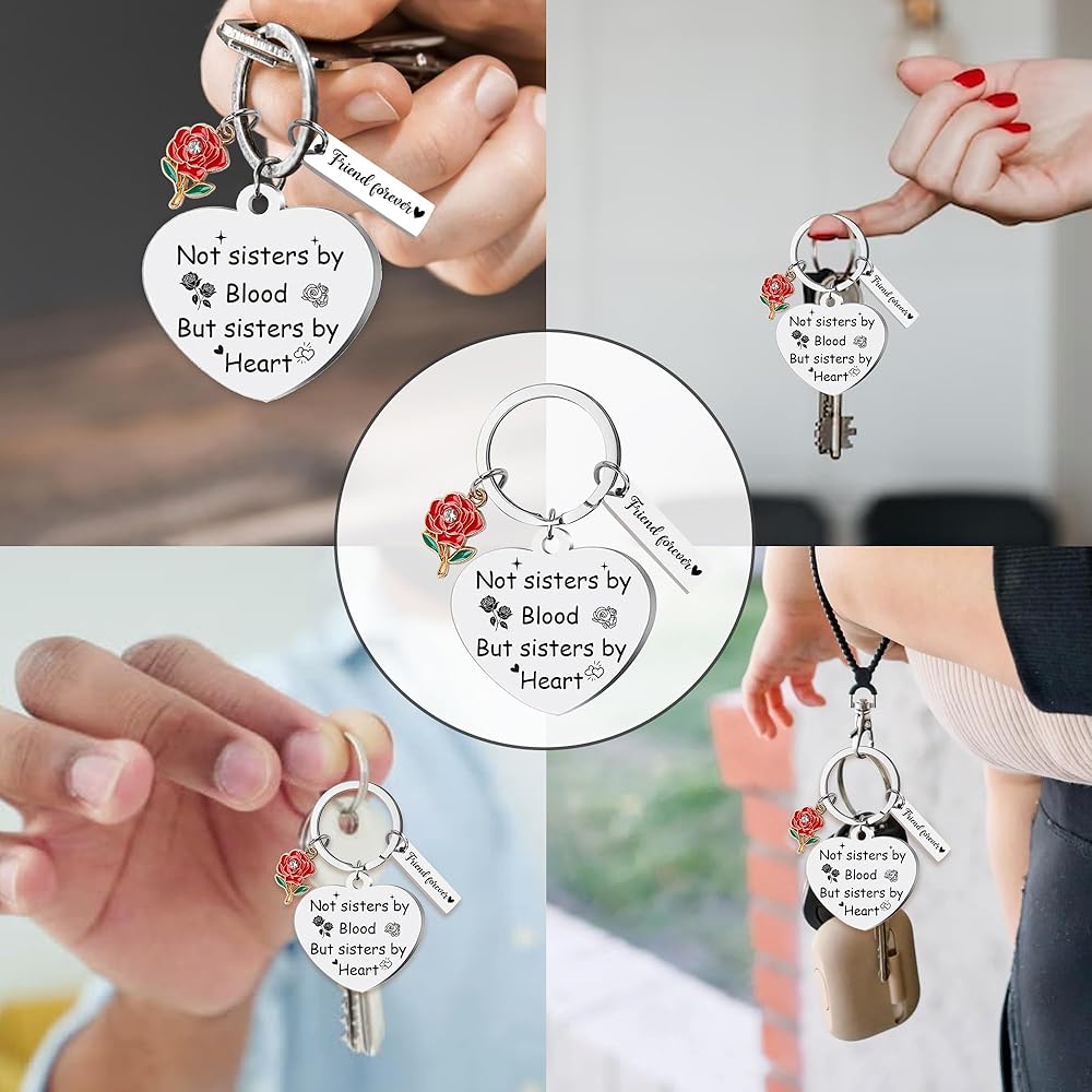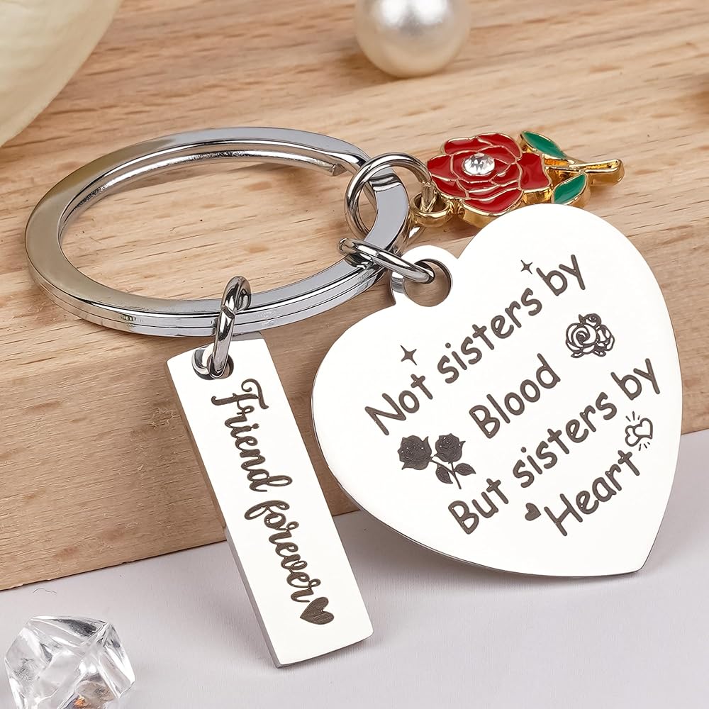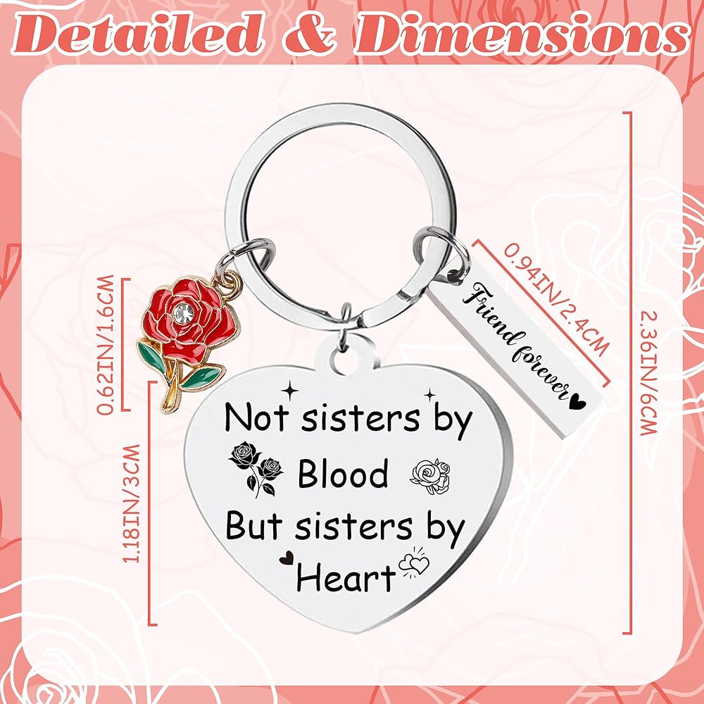 [Meaningful Friendship Keychain] This keychain celebrates the special bond with a heartfelt engraving: “Not Sisters By Blood But Sisters By Heart”; “We're not Sisters by Birth But We've Known from the start. God put us together to be sisters by heart” It is a touching gift for non-biological sisters who feel like true family