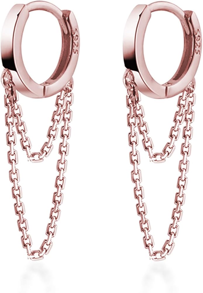 High Quality Material: These chain dangle hoop earrings are made of S925 sterling silver, not just the posts, but the entire body of the earrings is made of sterling silver. Sensitive ears can also be worn with confidence, without causing allergies or turning skin green.