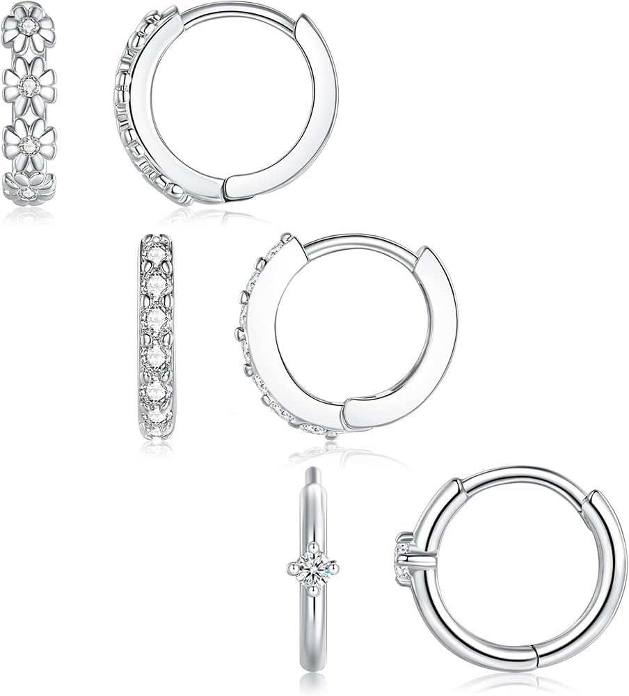Must Have Small Silver Hoop Earrings Set: Our small huggie hoop earrings set make a stunning addition to your face and add a touch of sparkle to any outfit. Lightweight and comfortable, can be used as cartilage, tragus, helix, piercing earrings.
