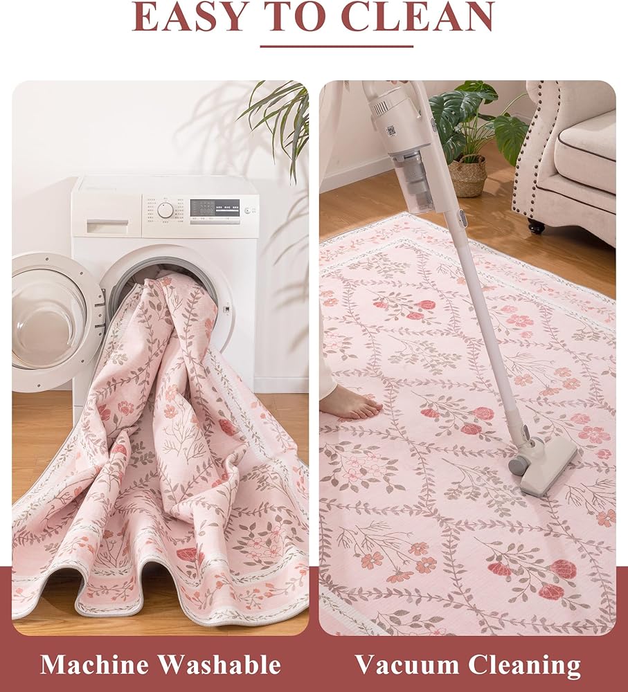 Machine Washable Rug: Dust and dirt are easily removed from the surface. Spills can be wiped up immediately. Daily vacuum cleaning is enough. For deep cleaning, it is recommended to machine wash in cold water with a neutral detergent.
