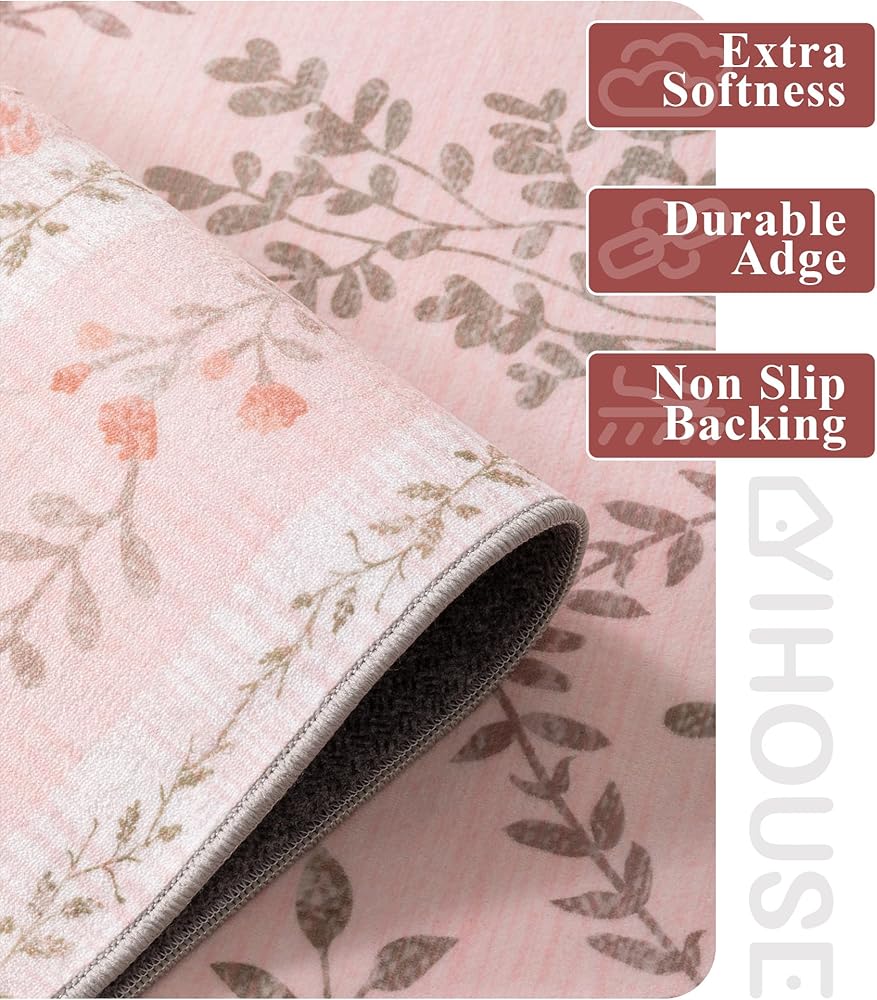 Beautiful Floral Rug: This YIHOUSE area rugs has a trendy Moroccan style and a unique floral pattern rug, vintage tones blend perfectly with your home. This rug is made of faux wool fibers; Easy on the feet-soft as cotton balls; stain-resistant and non-shedding and resists color fading..