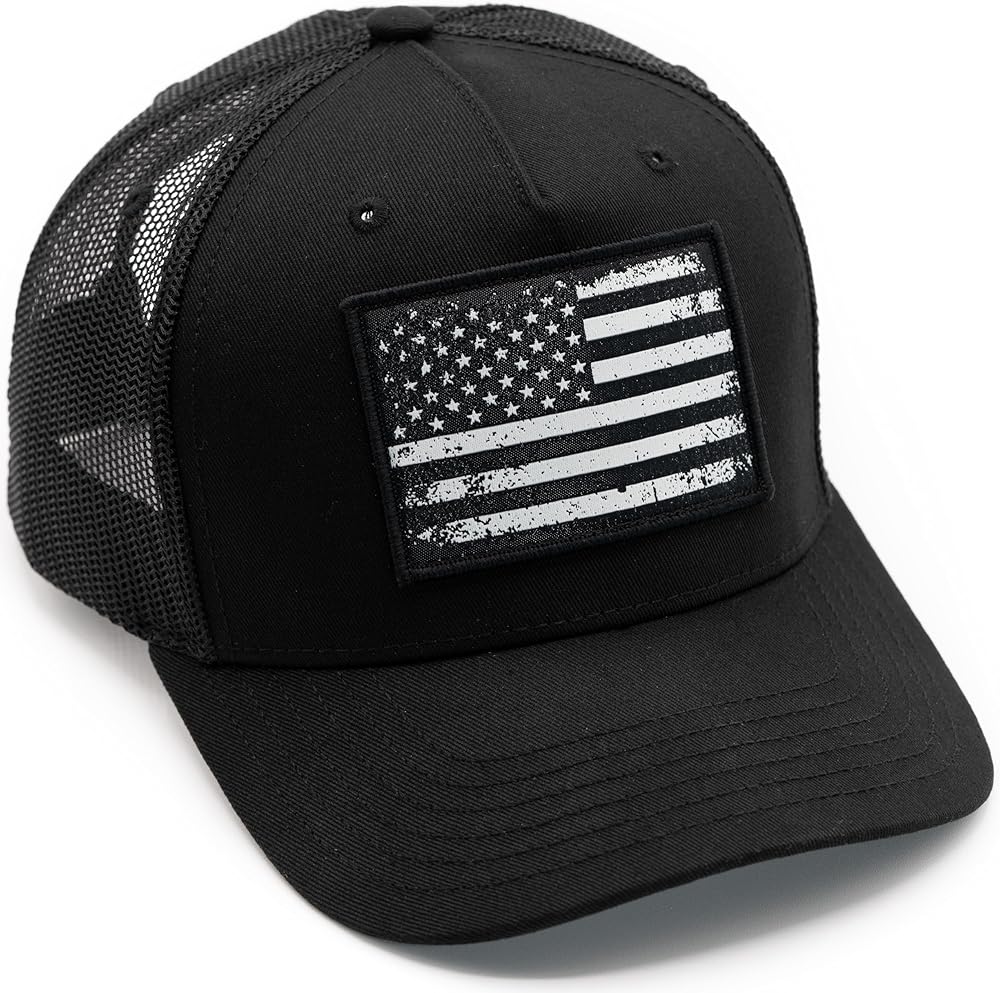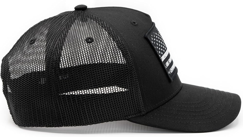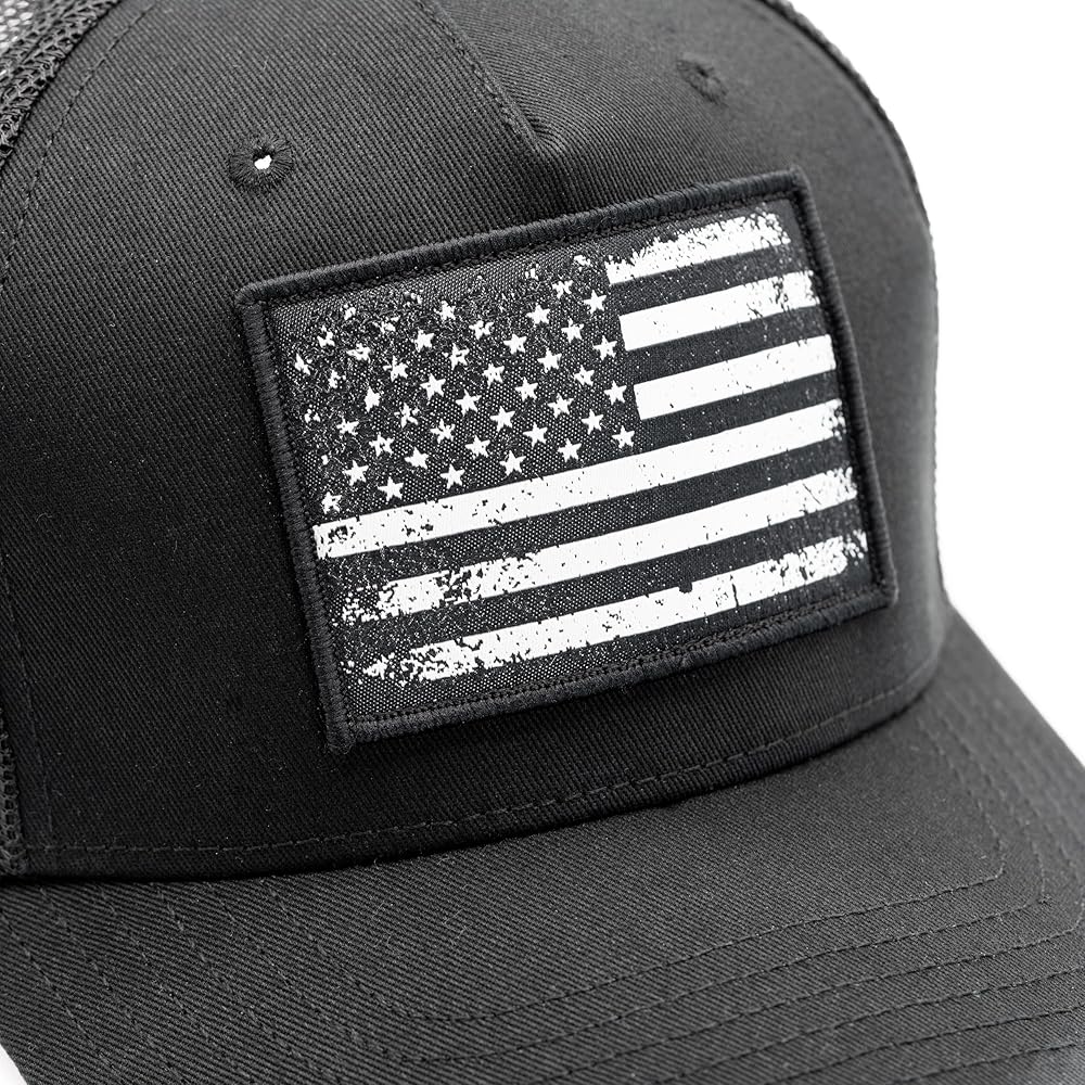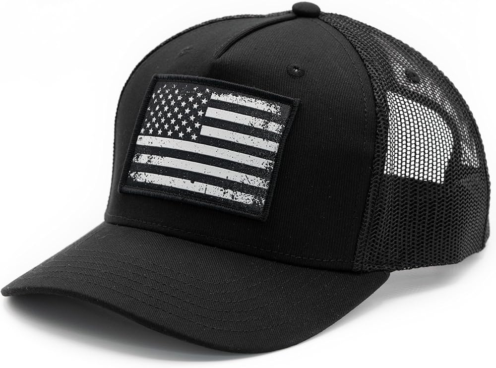 WEAR YOUR PATRIOTIC SPIRIT - Show off your American pride with this stylish trucker hat featuring a premium woven red, white, and blue flag patch, symbolizing resilience and heritage.