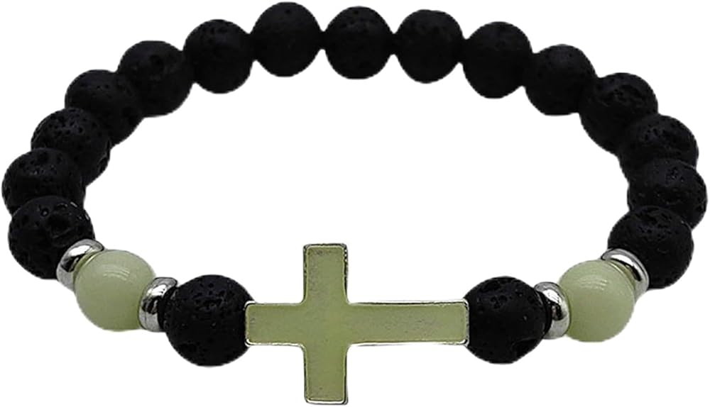 Material/Adjustable Fit: The stretch beaded construction allows for an adjustable fit for most wrist sizes.8mm round Lava Rocl Beads, Stinless Steel Cross and Elastic Rope not easy to break.
