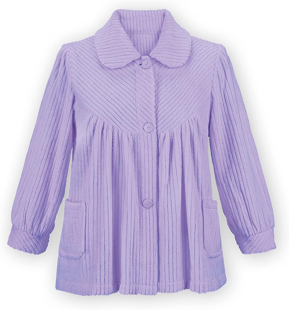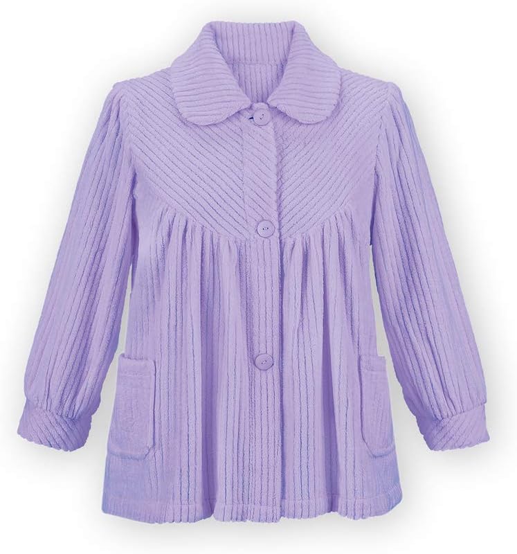 - It features a full button front, flattering collar, patch pockets and an easy fit to wear over nightgowns and pajamas