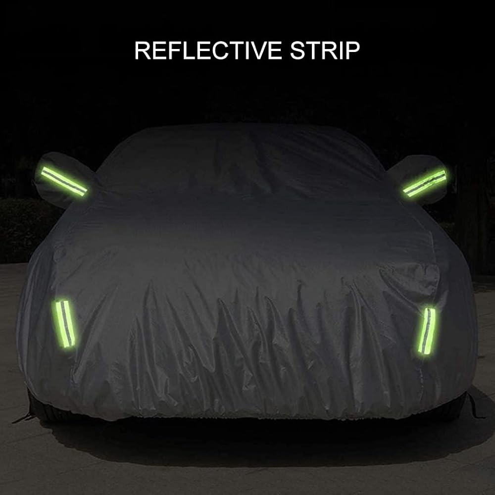 Weatherproof Protection: Car cover is like gloves, give you all-weather, all-season protection.This vehicle cover is suitable for spring, summer, autumn and winter. Car cover can protect your car from sun, rain, scratch, dust, leaves, branches, snow, frost, and birds poop. There are 4 windproof straps at the front and rear of the car cover, and combine adjustable elastic band at the front and rear bottom, to achieve windproof effect